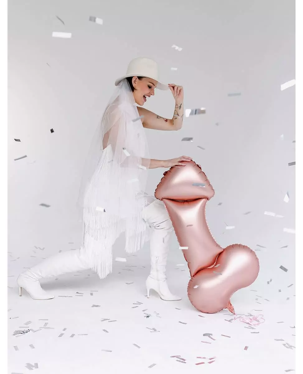 balloon that makes an impact! This rose gold aluminum penis balloon measures approximately 46 x 88 cm once inflated and promises a decoration worthy of the event. With its suggestive shape and metallic shine, it instantly creates a fun and offbeat atmosphere. Supplied with a straw, it is suitable for inflation with air or helium, depending on your wishes. Before inflation, it measures 55.5 x 112 cm. A must-have for a bachelorette party, a daring birthday or an evening with friends full of humor!. Accessories included: 1 balloon Material: Aluminum Care: 88 cm