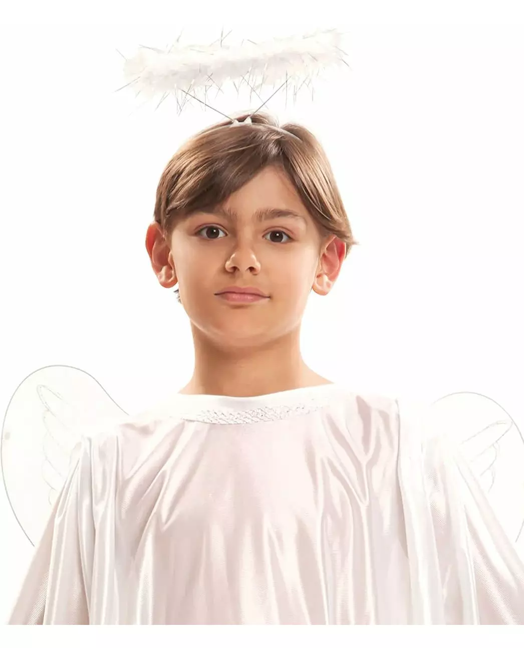 En ekte liten engel! Dette englepannebåndet med glorie er for barn. Dette pannebåndet er laget av plast. Det er dekorert med en glorie av hvite fjær med sølvtråder for ekstra glans. Dette pannebåndet vil elegant fullføre barnets englekostyme til slutten av året. Inkludert tilbehør: Pannebånd Materiale: PVC, fjær