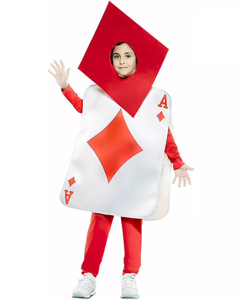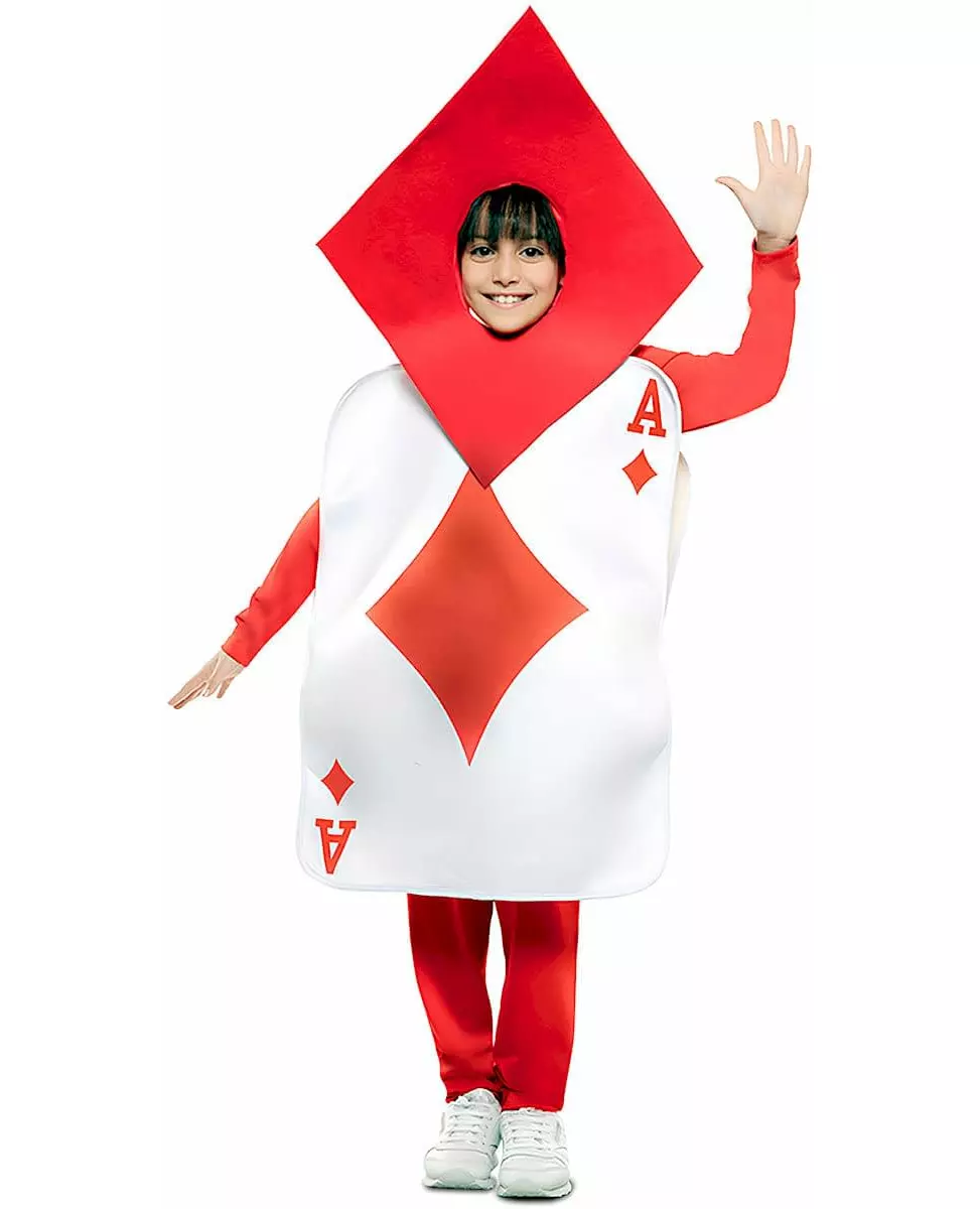 Den klareste diamanten! Dette diamant-ess-kostymet for barn inkluderer et kortformet kostyme og en matchende diamantformet hatt. Den hvite tunikaen, med et lett quiltet design, er dekorert med knallrøde symboler som representerer diamant-esset, plassert symmetrisk for en umiddelbar effekt. Det rette og komfortable snittet lar barnet forbli bevegelsesfritt hele dagen. Den myke og synlige diamantformede hatten fullfører antrekket med et morsomt og originalt preg. Ideell for en parade, et karneval, en fest med spilltema eller for å bli med i en gruppe inspirert av de fortryllede kortenes verden. Inkludert tilbehør: 1 kostyme 1 hatt Materiale: 100 % polyester Vedlikehold: Håndvask