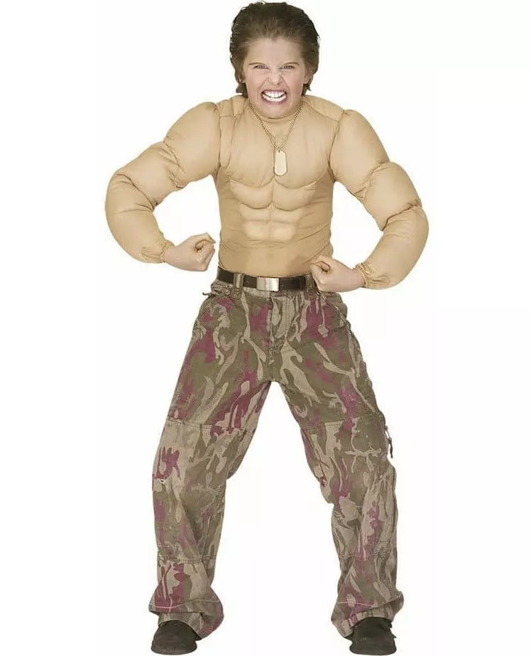 Som om du har trent hele livet! Denne falske muskuløse torsoen for barn er hudfarget. Bortsett fra ryggen er hele kostymet fôret med skum for å fremkalle formen til imponerende muskler. Dette tilbehøret kan enkelt tas på over hodet som en enkel t-skjorte og festes til halsen med borrelås. Vær den sterkeste og lat som du er Rambo til en bursdag eller et karneval, for eksempel. Copyright Widmann SRL. Inkludert tilbehør: Topp Materiale: 100 % polyester Pleie: Håndvask
