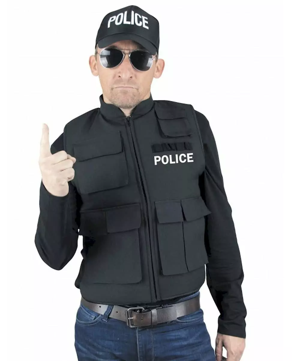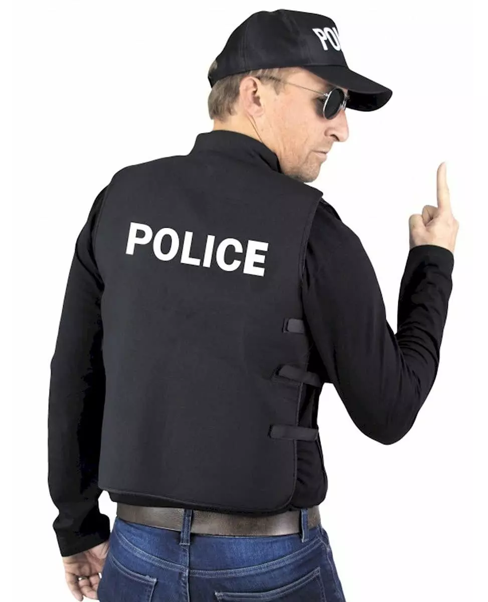 Bli en ekte politibetjent med denne vesten Denne falske politivesten for voksne er svart, med flere lommer foran. Ordet «Police» er trykt i hvitt på brystet og ryggen. Denne vesten vil være perfekt for å fullføre politikostymet ditt til karnevalet. Inkludert tilbehør: Vest Materiale: 100 % polyester Pleie: Håndvask