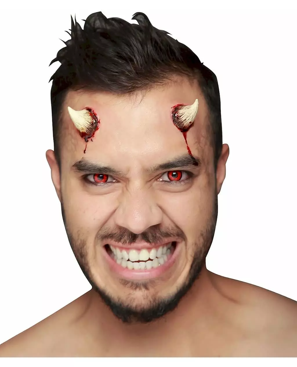 Bli et ondt vesen! Disse falske latekshornene representerer demonhorn (lim ikke inkludert). Plasser dem på pannen din og legg til røde merker for å simulere blod og fancy kontaktlinser for å fremheve den demoniske effekten. Fullfør det onde skapningskostymet ditt med dette Halloween-verdige tilbehøret. Inkludert tilbehør: 2 falske horn Materiale: 100 % lateks