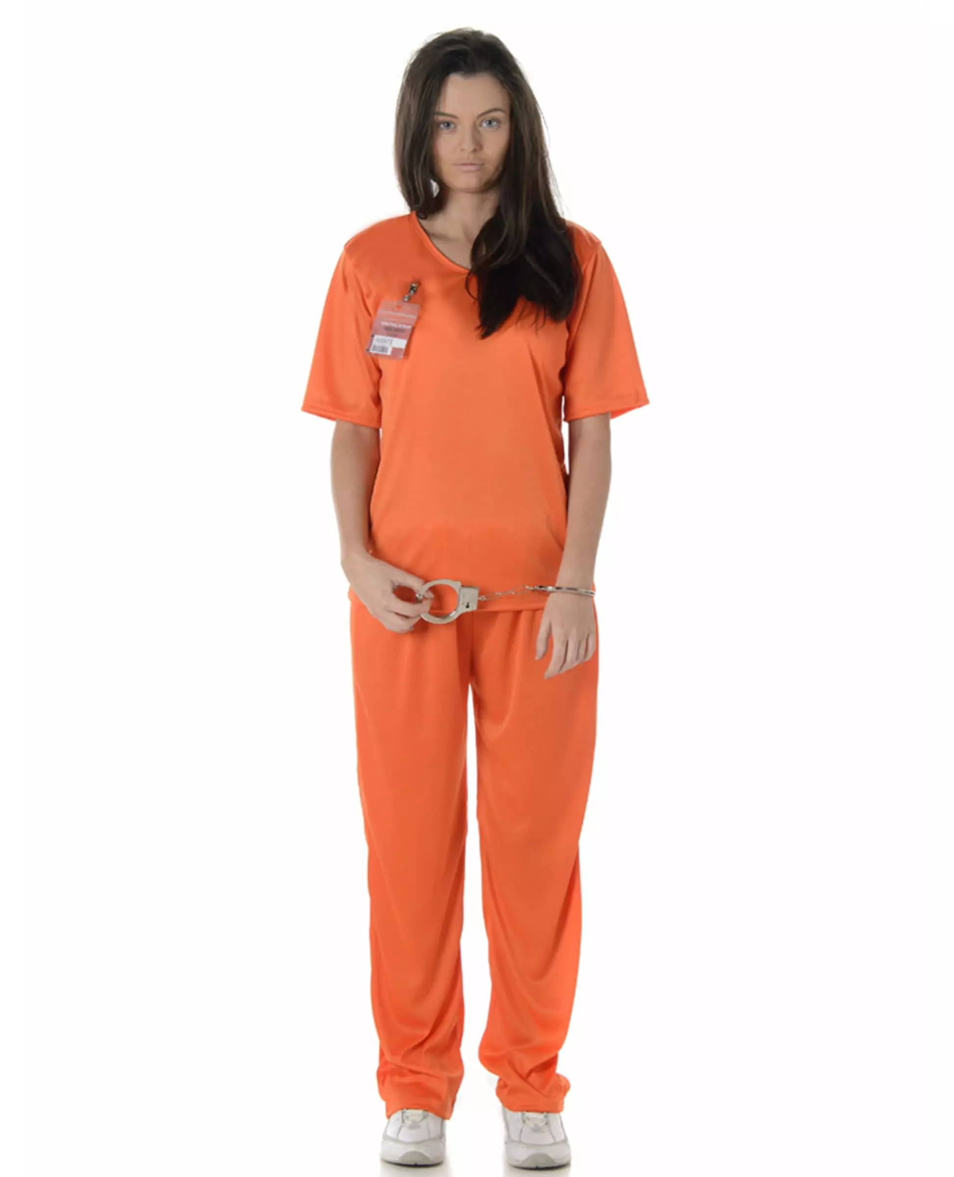 En fange rett ut av en TV-serie! Dette damekostymet består av en bluse, bukse og et merke. Den heloransje blusen har en veldig lett halsutringning med korte ermer, og inskripsjonen «DOC» er flokket på ryggen i svart. De oransje buksene er også løstsittende og har en elastisk linning for bedre støtte. To sidelommer er sydd på. Til slutt festes det medfølgende merket til brystet for en realistisk effekt! Det måler omtrent 9,5 x 8,5 cm. Har oransje blitt trendy igjen? Spør politivennene dine om en utkledningsfest med banditt- og uniformtema! Inkludert tilbehør: Bluse Bukse Merke Materiale: 100 % polyester Vedlikehold: Håndvask Målinformasjon: For en størrelse S måler blusen omtrent 66 cm og buksene 99,5 cm i lengden