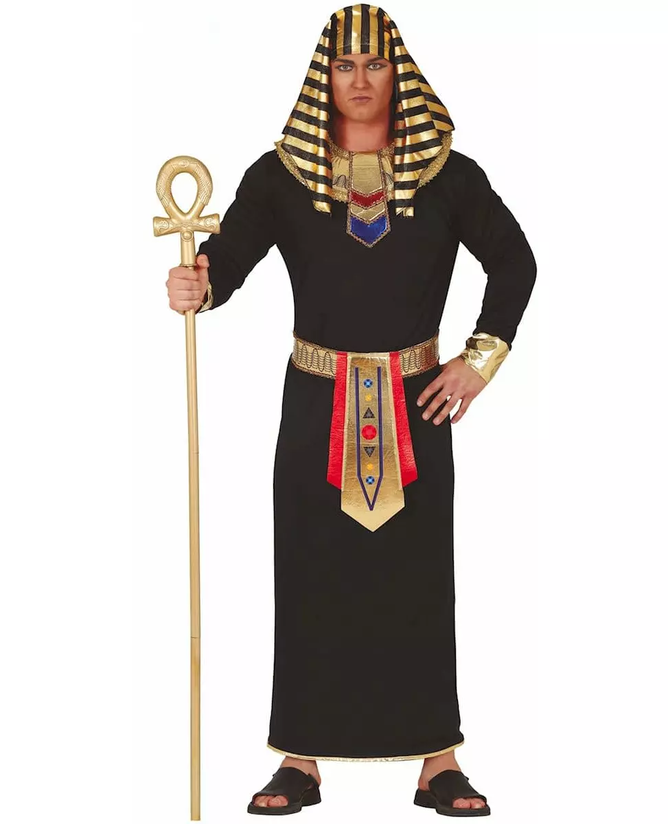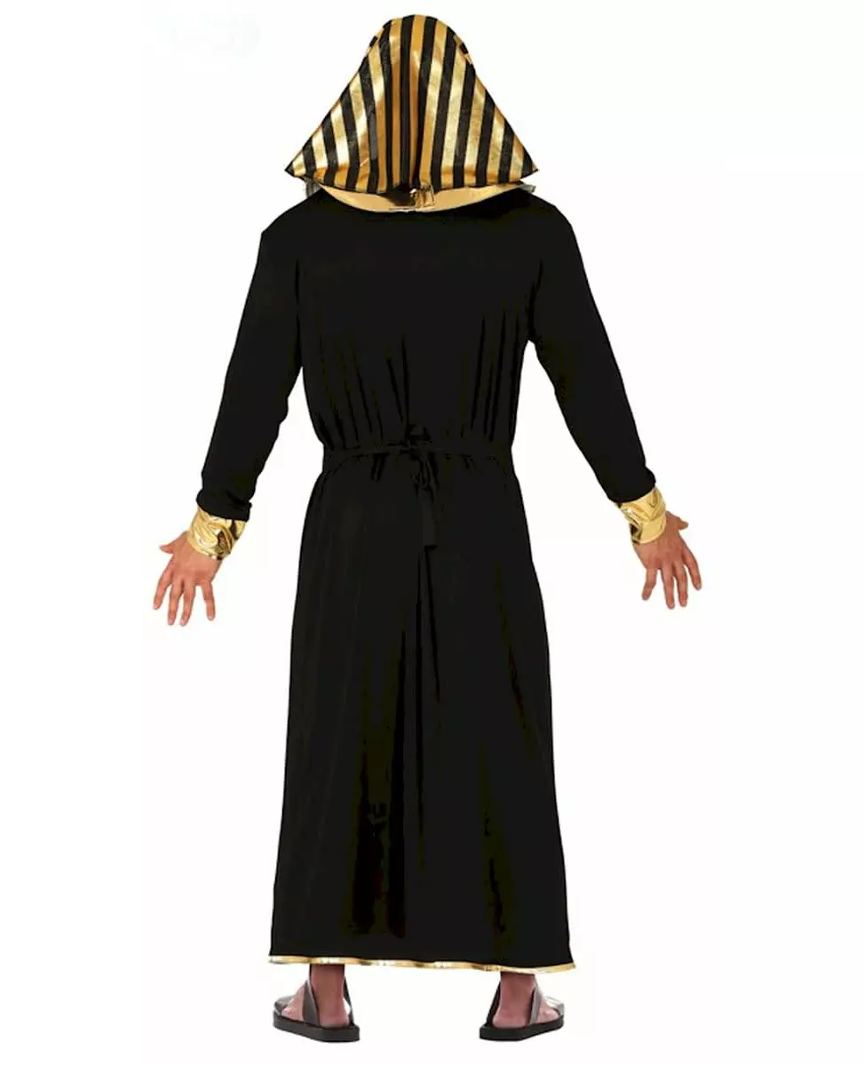 En ekte farao! Dette kostymet for voksne består av en kjole, et halskjede, et belte og et hodeplagg (tilbehør og sko er ikke inkludert). Kjolen med langermer går ned til anklene. Endene av ermene er i gull. Det tykke halskjedet, identisk med egypternes, festes med borrelås bak. Gullbeltet har fargerike trykk. Det knytes på baksiden. Til slutt finner du et hodeplagg i gull og svart som kan tas på som et pannebånd. Dette faraokostymet vil være perfekt for en utkledningsfest med et folkeslag-tema eller under karnevalet! Inkludert tilbehør: Kjole Belte Halskjede Hodeplagg Materiale: 100 % polyester Vedlikehold: Håndvask