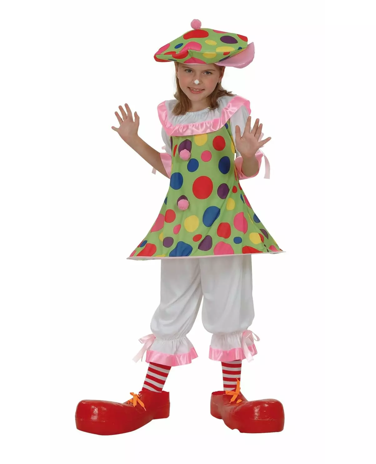 Fargerikt klovnekostyme med polkaprikker for jenter