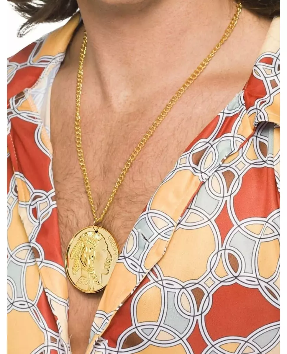 Fantastisk! Dette femcentskjedet er laget av metall. Kjedet måler omtrent 80 cm langt og centen er omtrent 5 cm i diameter. Det vil være behagelig å ha rundt halsen for å imponere vennene dine. Enten du er en gangster eller en rapper, vil det være ideelt å følge kostymet ditt under temafestene dine.