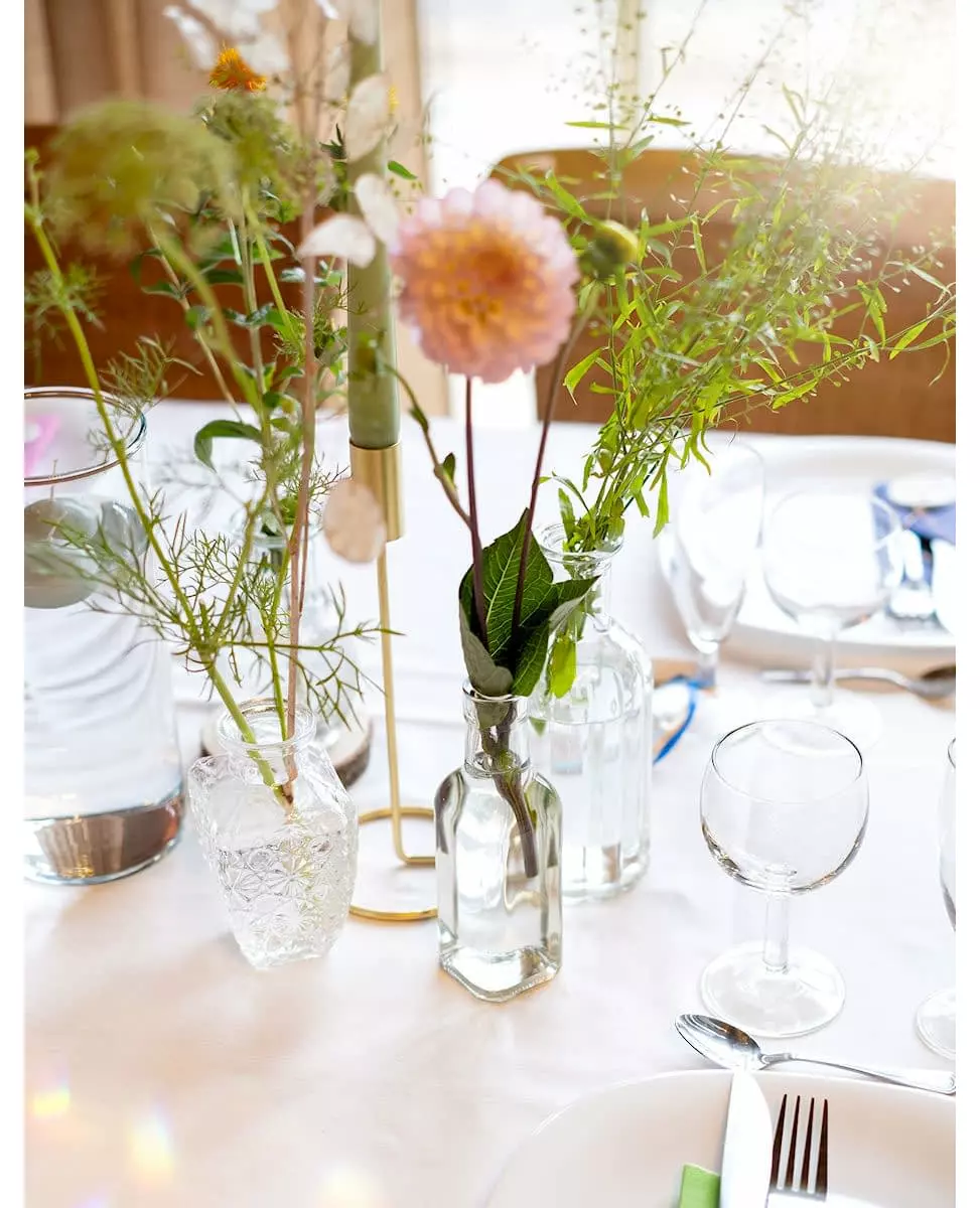 Lag en enkel blomsterdekorasjon! Denne vasen er formet som en flaske og er laget av gjennomsiktig glass. Den måler 15 cm i høyden og 5 cm i bredden. Denne vasen vil være den ideelle dekorasjonen til borddekorasjonene dine i et bryllup eller et festmåltid. Tips: Vær kreativ, fyll denne vasen med forskjellige fargede sandbiter. Inkludert tilbehør: Vase Materiale: Glass