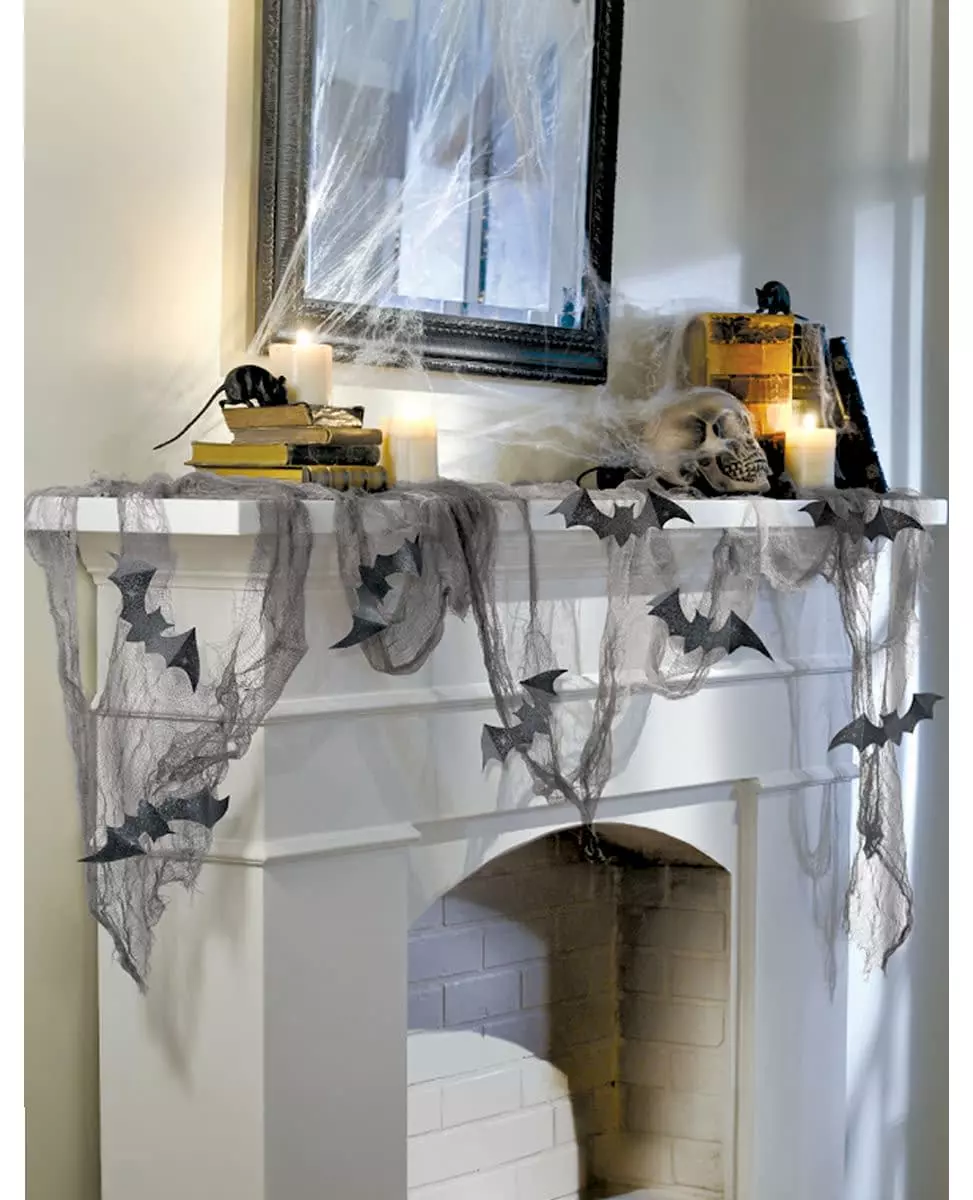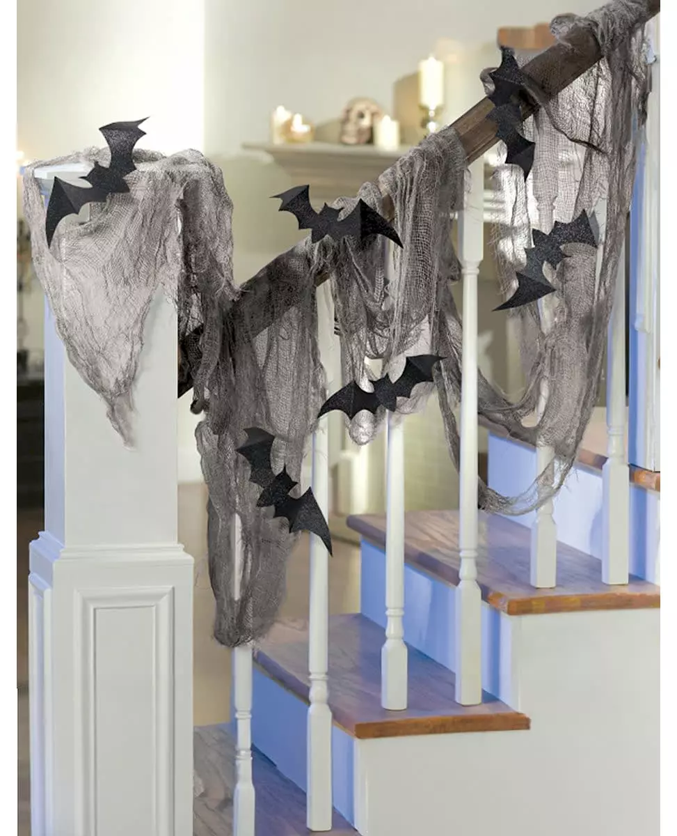 Hent inn flaggermusene! Dette «flaggermuslaken»-settet inneholder 8 papirflaggermus, et svart laken og en skumstripe til oppheng. Lakenet måler 61 cm x 4,57 m, og flaggermusene har et vingespenn på 25 cm. For å fullføre Halloween-dekorasjonen din, selv på trappen, er dette flaggermussettet perfekt. Inkludert tilbehør: Laken 8 flaggermus Skum