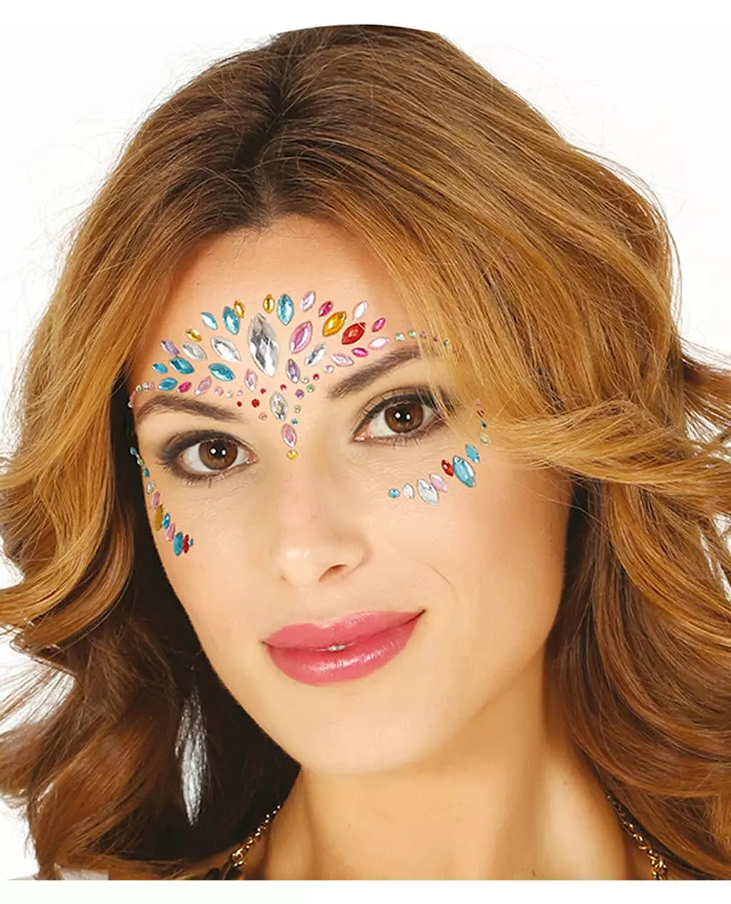 Et fargerikt utseende! Dette settet inkluderer selvklebende ansiktssmykker. Disse plastsmykkene kommer i flere former og farger som passer din stil. De er enkle å lime, og festes enkelt til ansiktet ditt, og gir den siste blendende touchen til sminken din, enten du spiller en fe, en havfrue eller en annen figur. Ideelt for å fullføre antrekket ditt på kostymearrangementer som karneval, Halloween eller en temafest, vil dette settet gi sminken din et snev av glamour og fantasi. Ingredienser: NC. Inkludert tilbehør: Selvklebende smykker Forsiktighetsregler: Ikke vaskbar