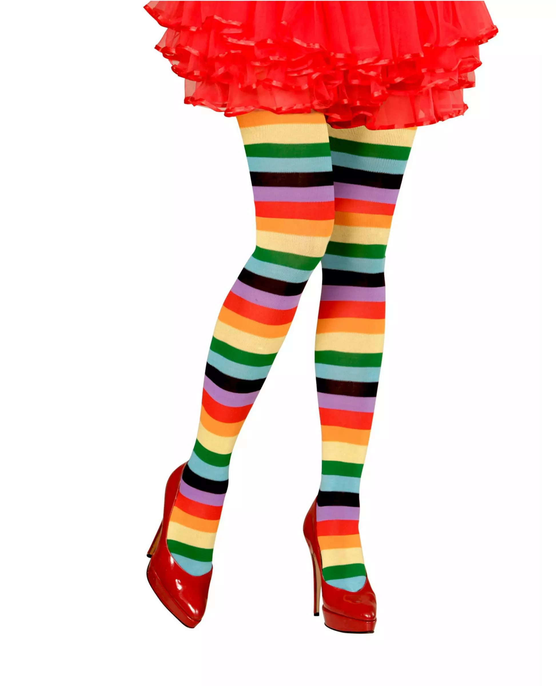 Fargerike bein! Disse vakre flerfargede strømpebuksene er designet for voksne. De er i regnbuens farger (blå, lilla, rød, grønn, gul, oransje osv.) og er ganske tykke. De er tilgjengelige i én størrelse. De vil være perfekte for å fullføre klovnekostymet ditt på karneval eller til en utkledningsfest! ©Copyright Widmann SRL. Inkludert tilbehør: 1 par strømpebukser Materiale: 80 % polypropylen / 20 % elastan Pleie: Håndvask