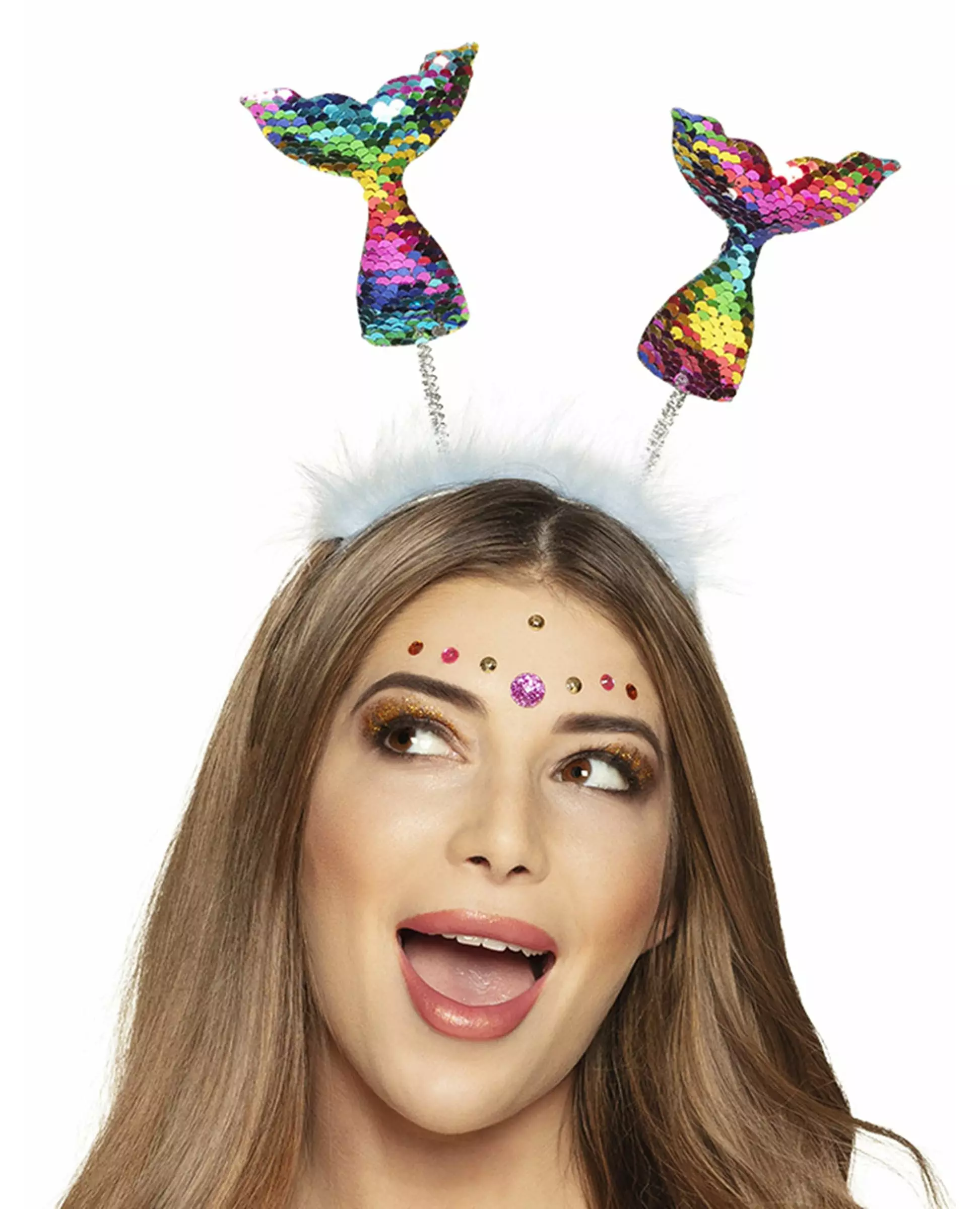 Gi havfruekostymet ditt et snev av originalitet! Dette pannebåndet for voksne er dekorert med flerfargede paljettbesatte havfruehaler. Havfruehalene er montert på fjærer og vil bevege seg med bevegelsene dine. Dette tilbehøret vil fullføre havfruekostymet ditt perfekt på karnevalsdagen. Inkludert tilbehør: 1 pannebånd