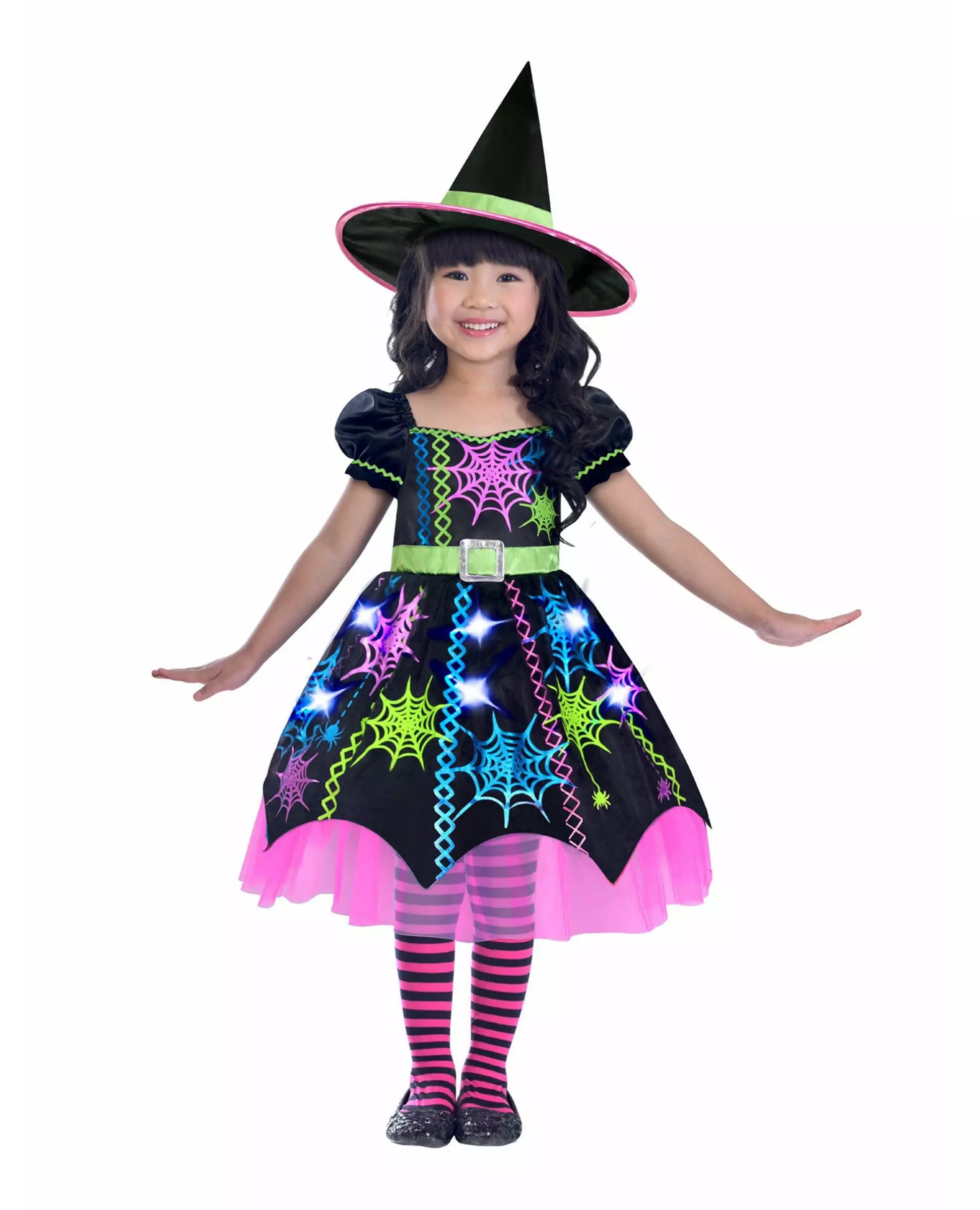 Velg et søtt kostyme til Halloween Dette edderkoppheksekostymet for jenter består av en kjole og en hatt (strømpebukser ikke inkludert). Heksekjolen er svart, med flerfargede trykk som representerer spindelvev. Et grønt belte er i livet. Heksehatten er svart, med et grønt bånd nederst og en pen rosa kant. Dette kostymet vil være perfekt for å dra på godterijakt på Halloween-kvelden. Tilbehør inkludert: Kjolehatt Materiale: 100 % polyester Stell: Håndvask Referanse: 6XPG Retur mulig: Ja Se returbetingelser Tilgjengelighet: 4–6 år (110 cm) 6XPGE662