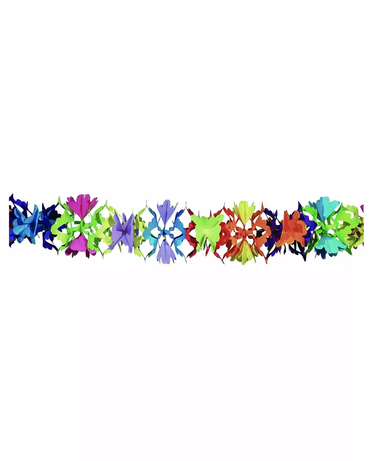 6 meter lang! Denne flerfargede papirgirlanderen måler omtrent 6 meter lang og 16 cm bred. En snor er inkludert for enkel bruk. Denne dekorasjonen vil være ideell for å gi rommet ditt et preg av farge under en festlig begivenhet. Inkludert tilbehør: Girlander Materiale: Papir