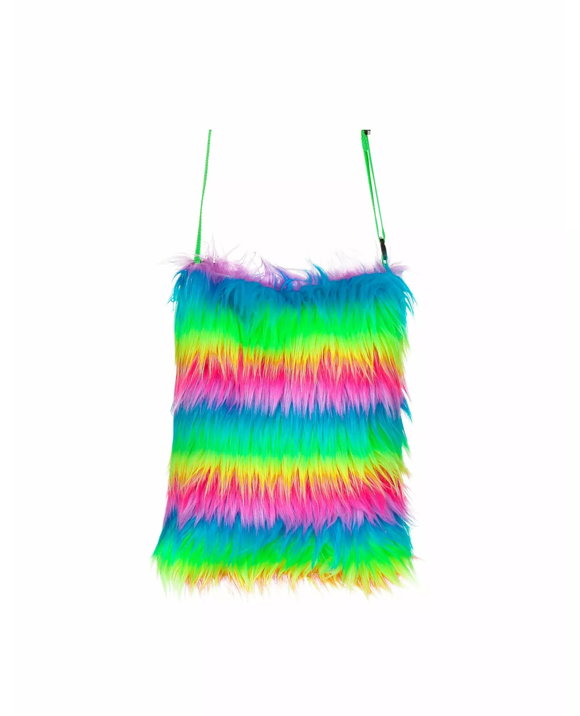 Legg til litt farge i kitsch-kostymet ditt med denne hårete vesken. Denne neonvesken er for voksne. Den er laget av et flerfarget pelsaktig stoff, som danner neonblå, grønne, gule og rosa striper. Dette tilbehøret vil være perfekt for å fullføre 80-tallskostymet ditt på en retrofest. Inkludert tilbehør: Veske Materiale: 100 % polyester Vedlikehold: Ikke vask, ikke blek, ikke tørketrommel, ikke stryk, ikke renseri