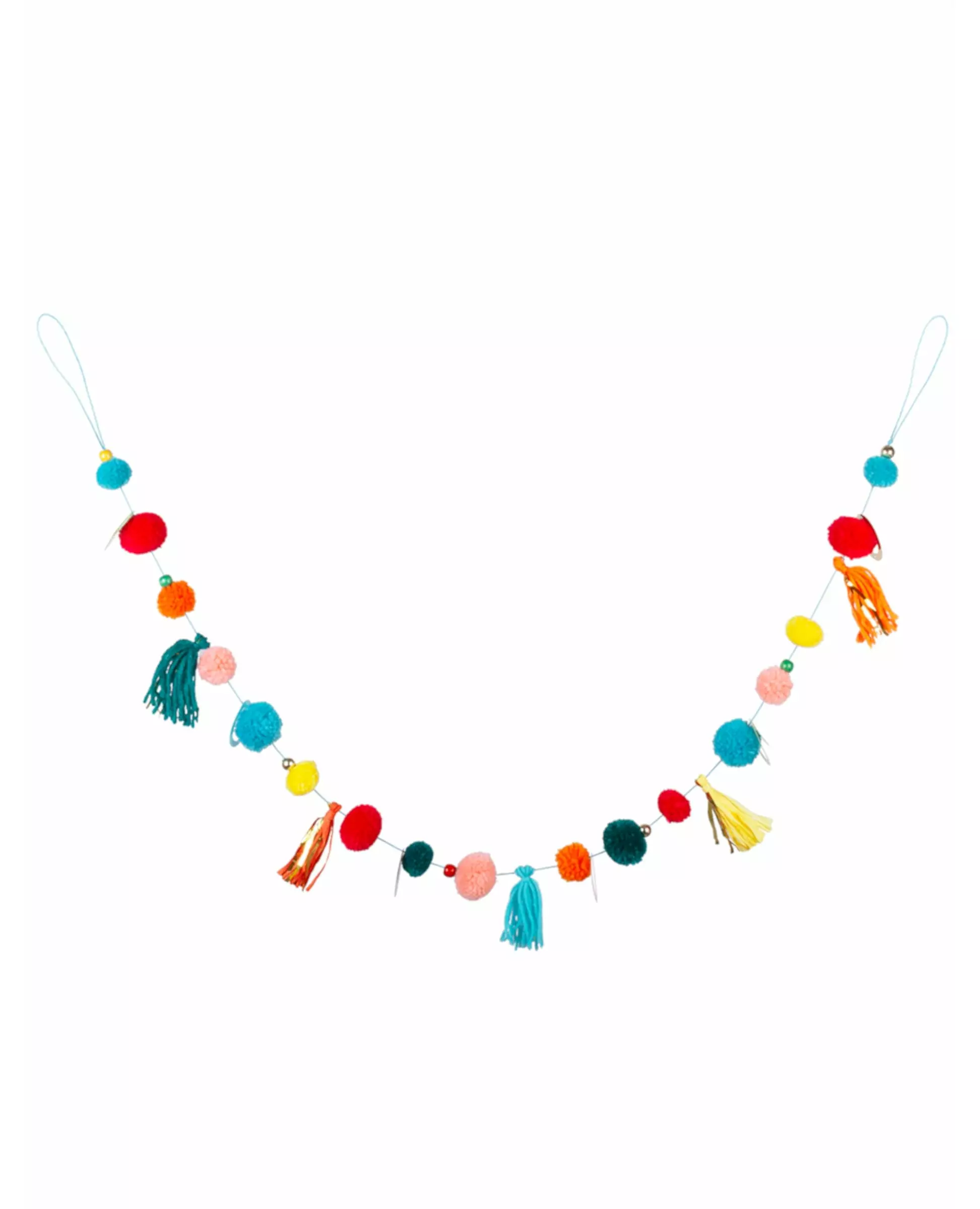 Legg til litt farge i dekorasjonen din med disse flerfargede pompongene! Denne girlanderen er laget av flerfargede pomponger og dusker. Den er omtrent 125 cm lang. Den vil være perfekt for å legge til farge i festdekorasjonene dine for en meksikansk eller hawaiisk temakveld! Inkludert tilbehør: 1 girlander