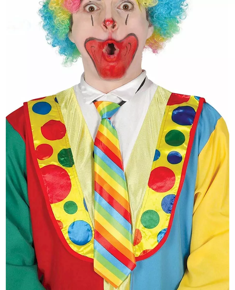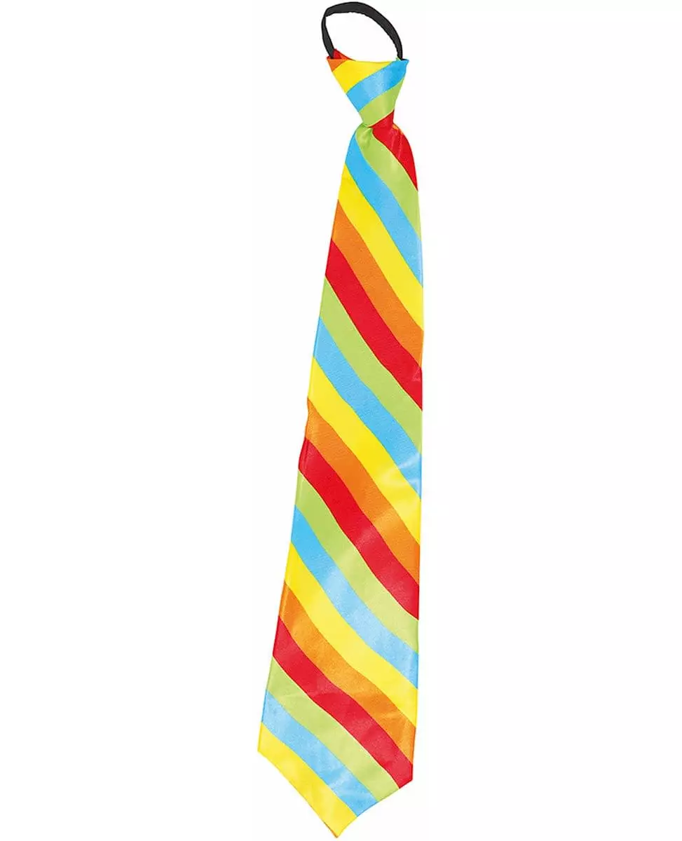 Et fargerikt slips! Dette klovneslipset for voksne er enkelt å ta på takket være en strikk. Slipset er laget av satengstoff og er stripete i alle farger. Dette slipset vil være det ideelle tilbehøret til et fargerikt klovnekostyme til en bursdag eller et kostymefest med sirkustema. Inkludert tilbehør: Slips Materiale: 100 % polyester Vedlikehold: Håndvask