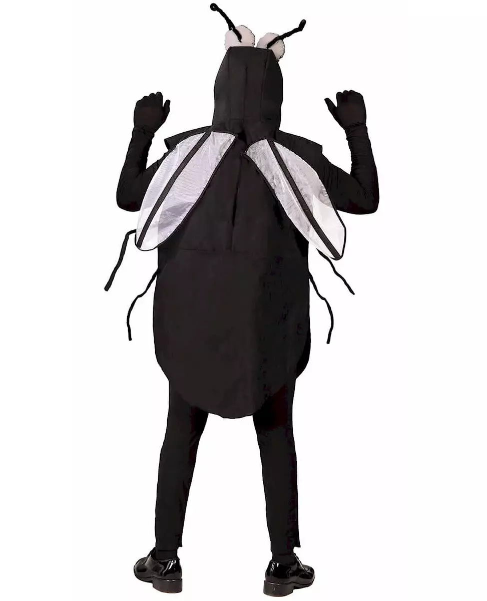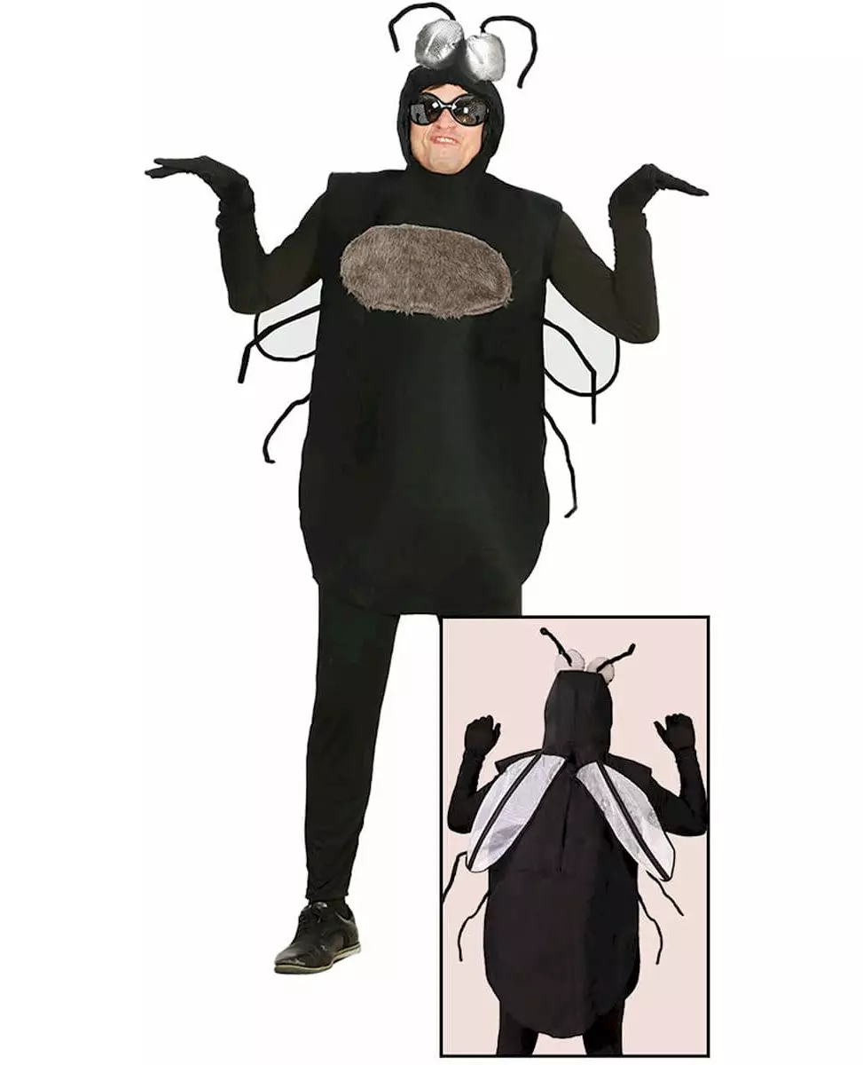 En uopphørlig summing Dette fluekostymet for voksne består av en jumpsuit med hette og vinger (topp, hansker og bukser er ikke inkludert). Den ermeløse jumpsuiten er laget av svart stoff fôret med skum. Grå imiterte hår er tilstede på overkroppen. En svart hette med store flueøyne og et par antenner gir dette svarte fluekostymet enda mer realisme. Til slutt er et par vinger sydd på ryggen. Dette kostymet vil være perfekt for å spille en svart flue på en humor- eller dyretema-kostymefest. Inkludert tilbehør: Jumpsuit med hette og vinger Materiale: 100 % polyester Vedlikehold: Håndvask
