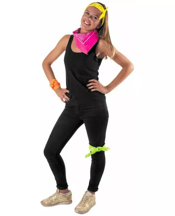 Få tilbake 90-tallsstilen din! Denne bandanaen for voksne er neonrosa. Denne bandanaen i retrostil er perfekt for 90-tallsfester, enten den er rundt halsen eller på hodet! Inkludert tilbehør: 1 bandana Materiale: 100 % bomull Pleie: Håndvask
