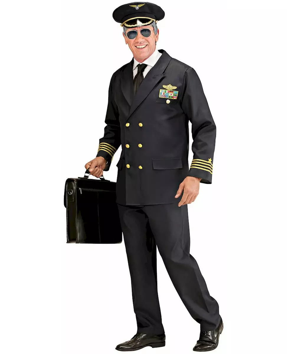 Gullfinish! Dette pilotkostymet for menn består av bukser, en matchende jakke og en caps (dokumentmappe, skjorte, slips og sko er ikke inkludert). Den marineblå dressjakken er veldig realistisk. Den er dekorert med kantbånd og en gullstjerne på ermekantene. Den har også en dobbel rad med gullknapper. Til slutt, for en enda mer realistisk finish, er det vinger som indikerer pilotens rolle, samt hans krigsbedrifter på brystet. Dressbuksene er også marineblå og har et rett snitt. Til slutt er capsen, som matcher uniformen, kantet med gullkantbånd på visiret, og gullvinger er også tilstede i midten av capsen. Dette pilotkostymet vil være ideelt for en temafest, et show eller til og med karneval!   © Copyright Widmann SRL. Inkludert tilbehør: Bukser Jakke Caps Materiale: 100 % polyester Stell: For hånd Målinformasjon: For størrelse XL, jakke ca. 84 cm lang, bukser ca. 109 cm lange, ermer 65 cm lange og caps 54 cm i diameter.