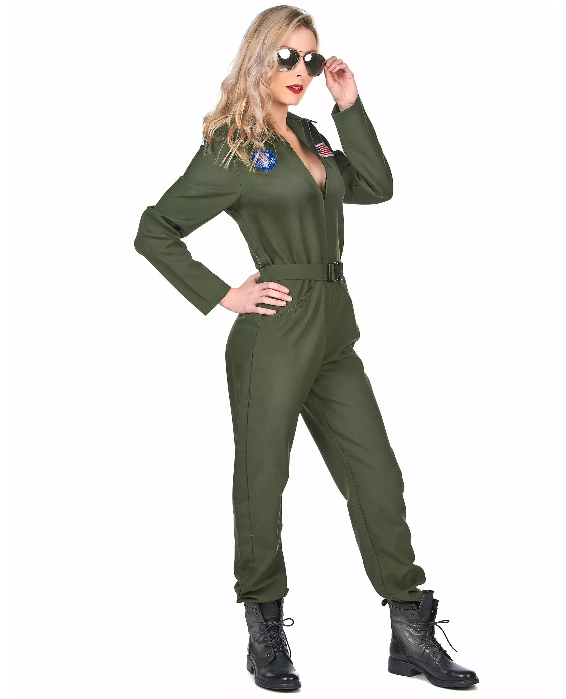 En ekte elitepilot! Dette flypilotkostymet består av en jumpsuit og et par beskyttelsesbriller. Jumpsuiten er laget av tykt khakistoff og åpnes med glidelås foran. Det er også et belte sydd i livet som lukkes med en plastspenne. På baksiden justerer en strikk seg perfekt til silhuetten. Briller i pilotstil med speilede linser og metallinnfatning fullfører dette antrekket med amerikansk utseende. Dette sexy flypilotkostymet lar deg paradere på en militær- eller uniformtema-utkledningsfest eller under karnevalet!. Inkludert tilbehør: Jumpsuit-briller Materiale: 100 % polyester Vedlikehold: Håndvask