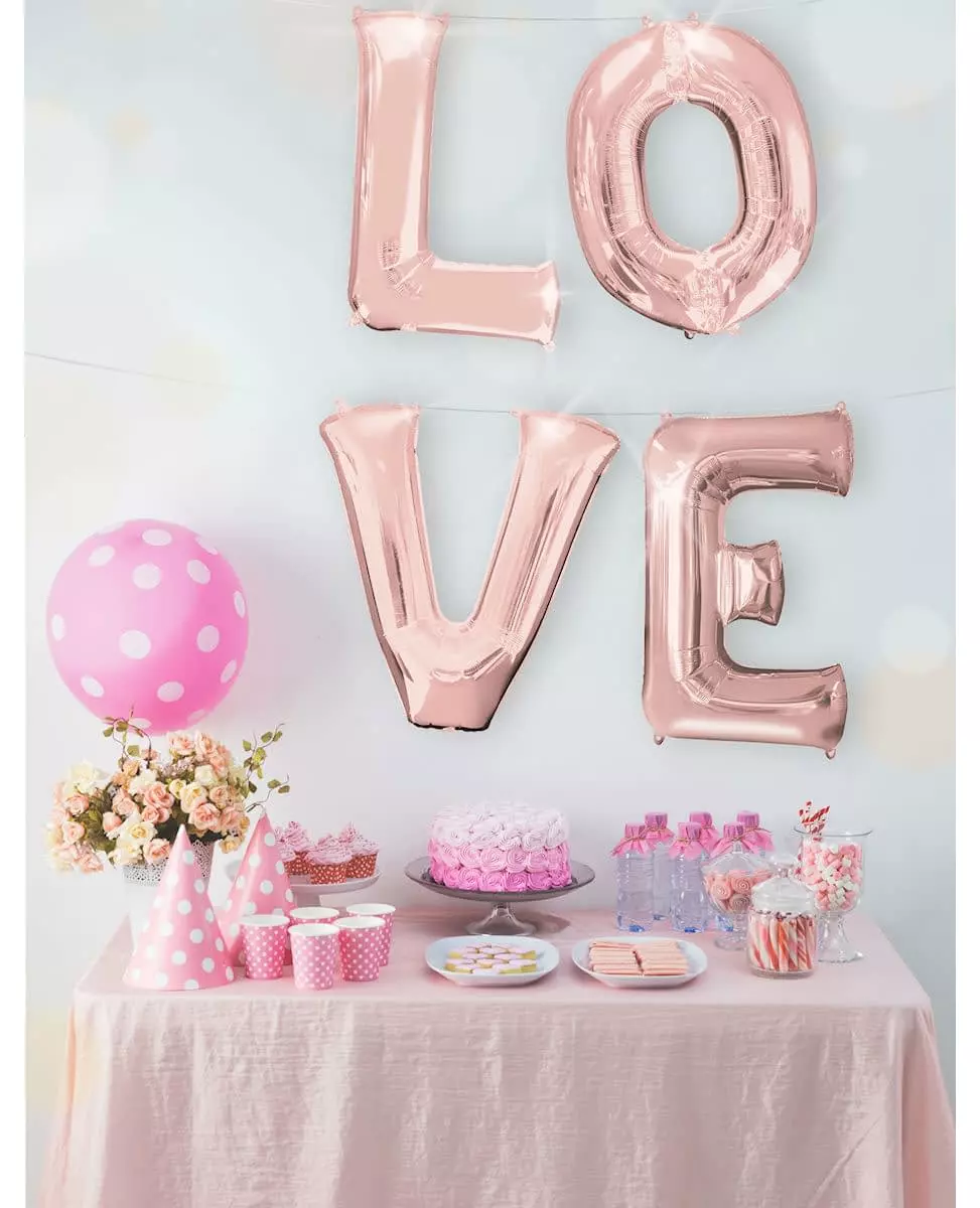 Stilig og trendy dekor! Denne aluminiumsballongen representerer bokstavene fra A til Å. Den er roségullfarget og måler omtrent 81 cm. Velg tallet du trenger fra rullegardinmenyen. Lag et fornavn eller en setning ved å sette sammen flere. Denne ballongen kan blåses opp med luft gjennom et sugerør eller med helium. Den vil være perfekt for å fullføre romdekorasjonen din til den lille prinsessens overraskelsesbursdag! Inkludert tilbehør: 1 bokstavballong Materiale: Aluminium