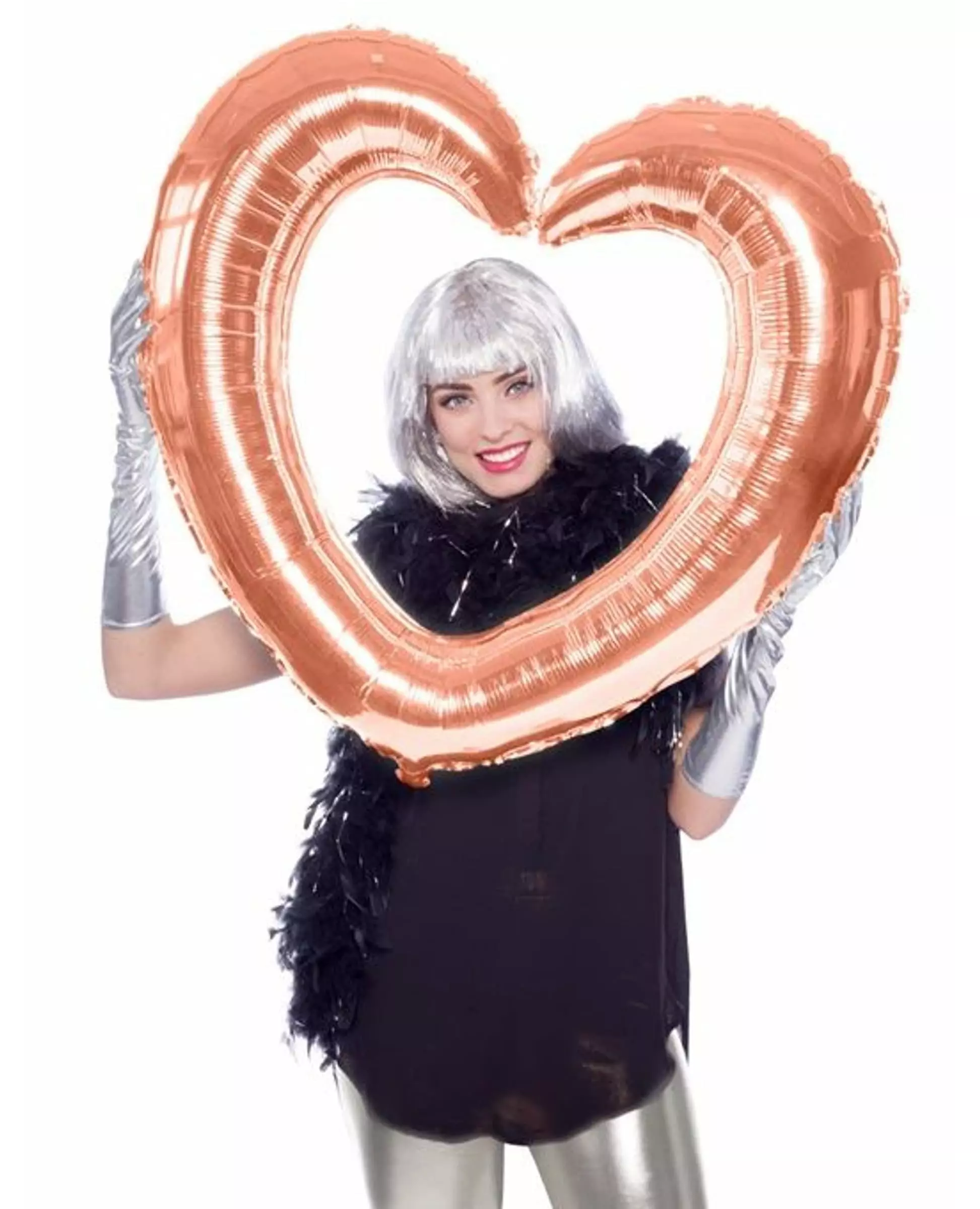 Livet i roségull! Denne folieballongen måler omtrent 80 cm høy. I roségullfargen vil den gi et trendy preg til rominnredningen din! Bruk den som en ramme for å ta minneverdige bilder fra kvelden! Denne hjerteballongen vil være perfekt for et roségullbryllup eller en romantisk Valentinsdag! Inkludert tilbehør: 1 rammeballong Materiale: Aluminium