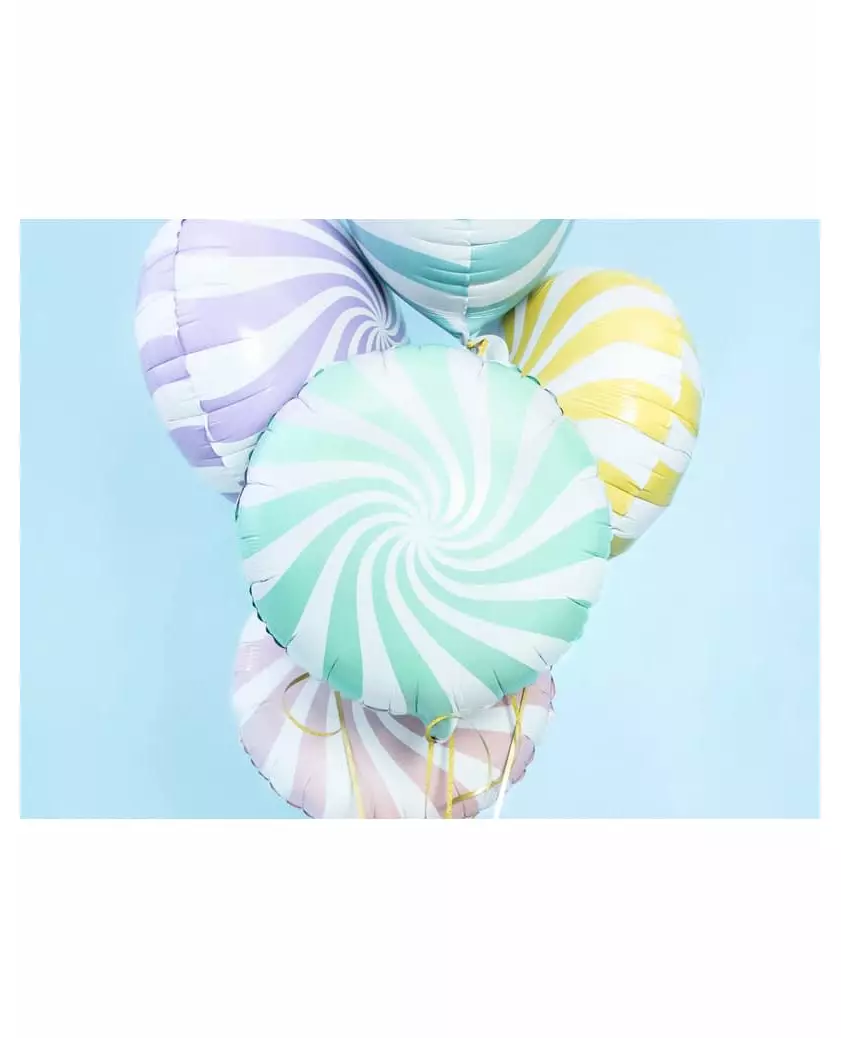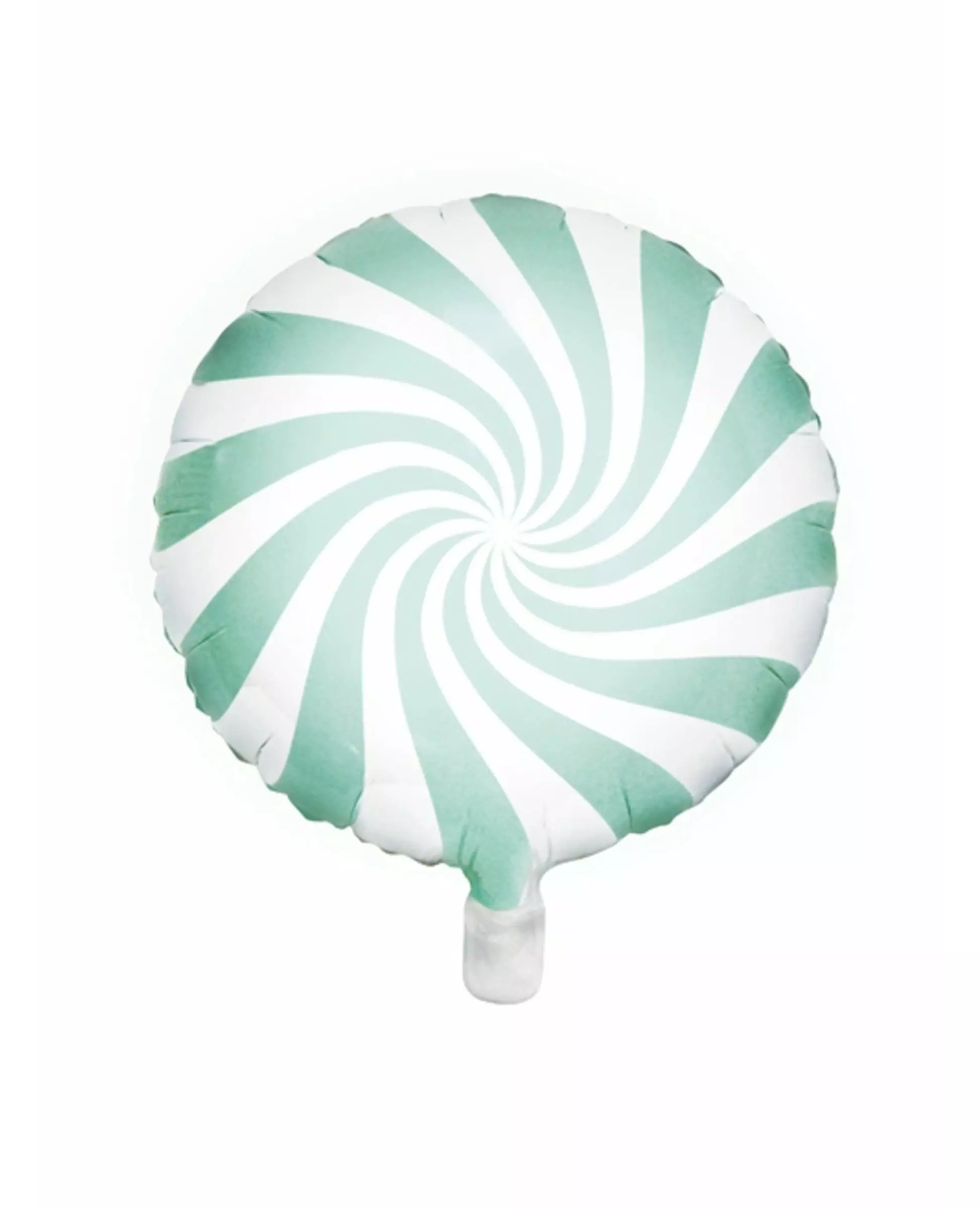 En myntefarget kjærlighet på pinne? Denne kjærlighet på pinne-ballongen er laget av aluminium. Den måler omtrent 45 cm i diameter. Den er hvit med en vakker grønn spiral som forestiller en myntefarget kjærlighet på pinne! Denne ballongen vil være ideell for å lage en vakker dekorasjon til en fest med godteritema eller for å feire en fødsel, for eksempel! Inkludert tilbehør: 1 ballong Materiale: Aluminium