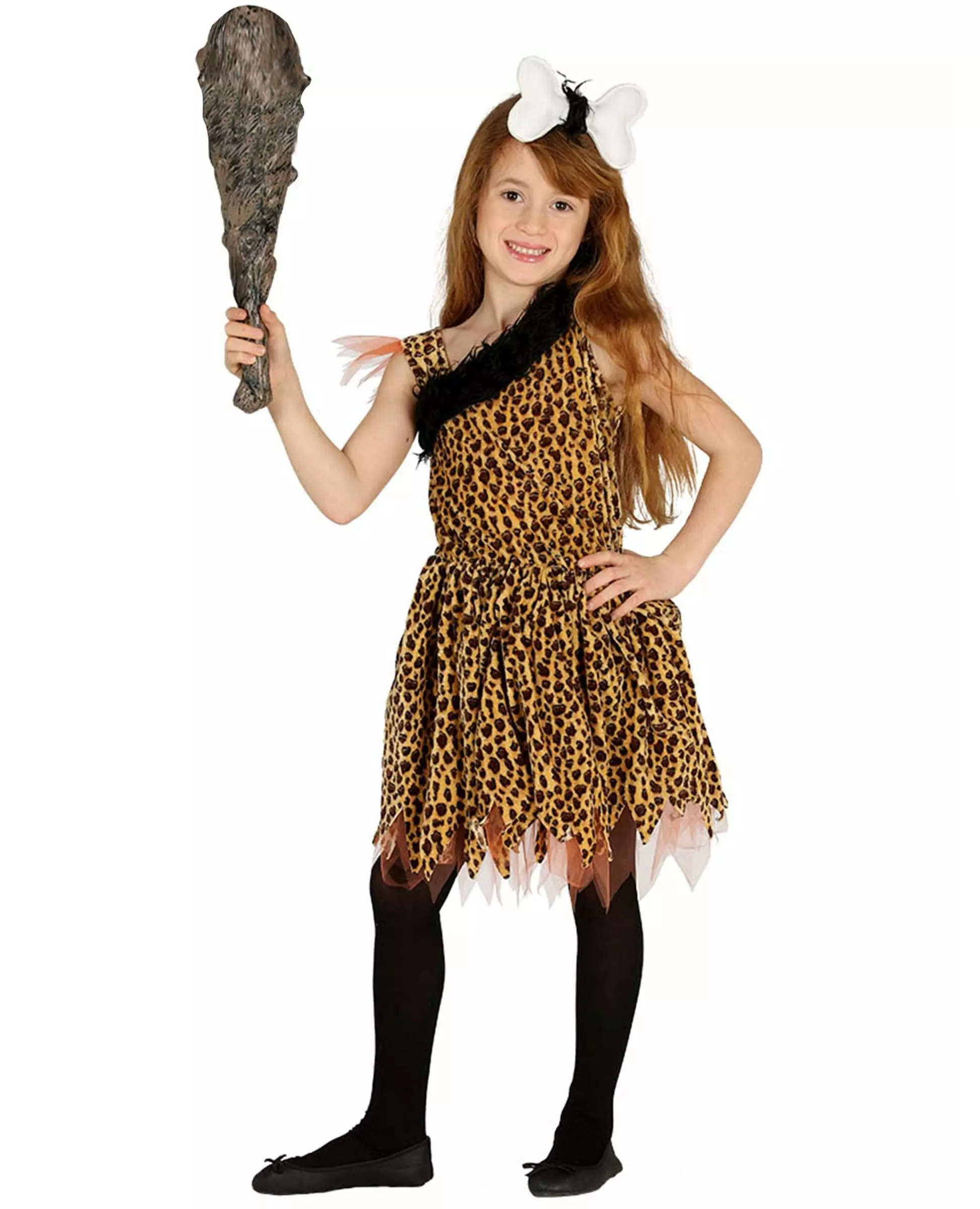 Forhistorisk jentekostyme En ekte liten hulejente. Dette forhistoriske kostymet er for jenter. Barnekostymet inkluderer: Kjole, hårtilbehør.