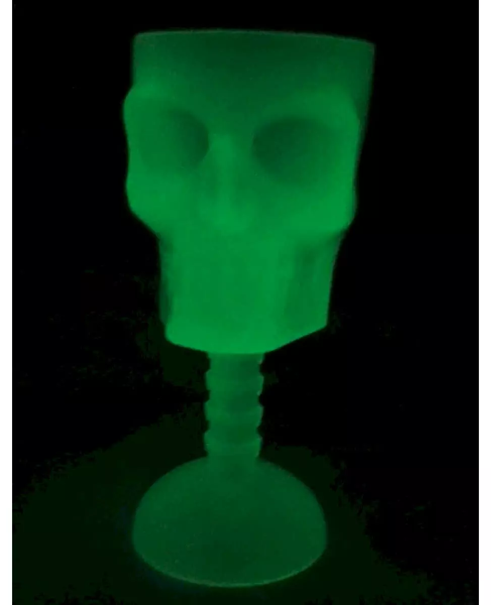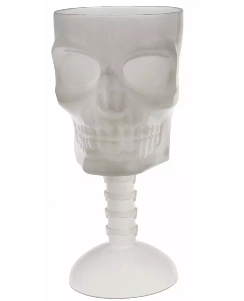 Et hodeskalleglass til Halloween! Dette hodeskalleglasset måler omtrent 18 cm. Dette glasset med hvit stilk representerer en hodeskalle. I tillegg til å være originalt, er det fosforescerende! Det vil være perfekt for å dekorere Halloween-bordet ditt!. Inkludert tilbehør: 1 glass