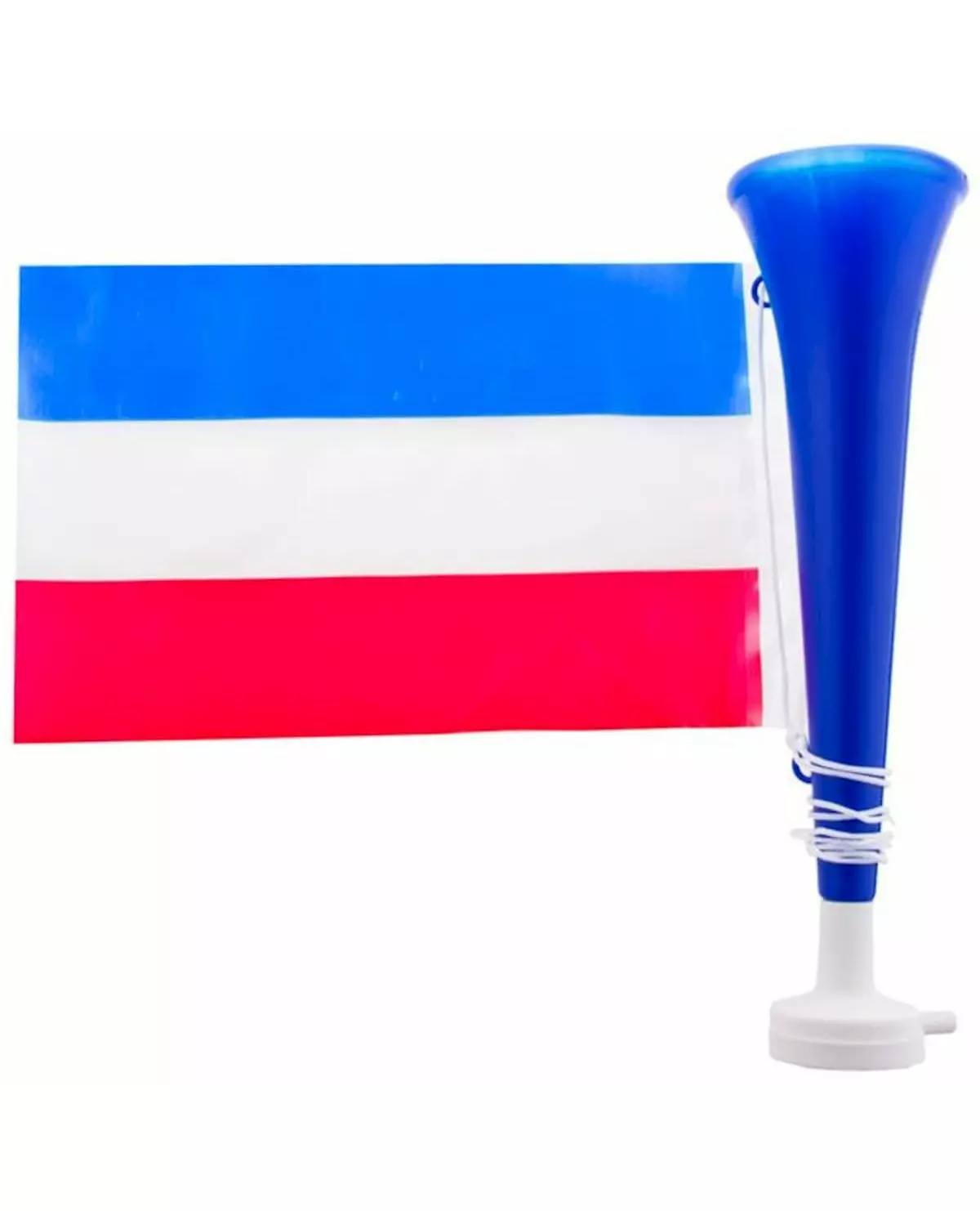Allez les bleus!!! Med denne flaggassosierte trompeten, sørg for at du ikke går ubemerket hen på ditt neste sportsarrangement eller andre anledninger! Her er det perfekte tilbehøret for enhver fransk supporter!. Inkludert tilbehør: 1 flaggtrompet Materiale: Plast + Syntetisk Pleie: Håndvask