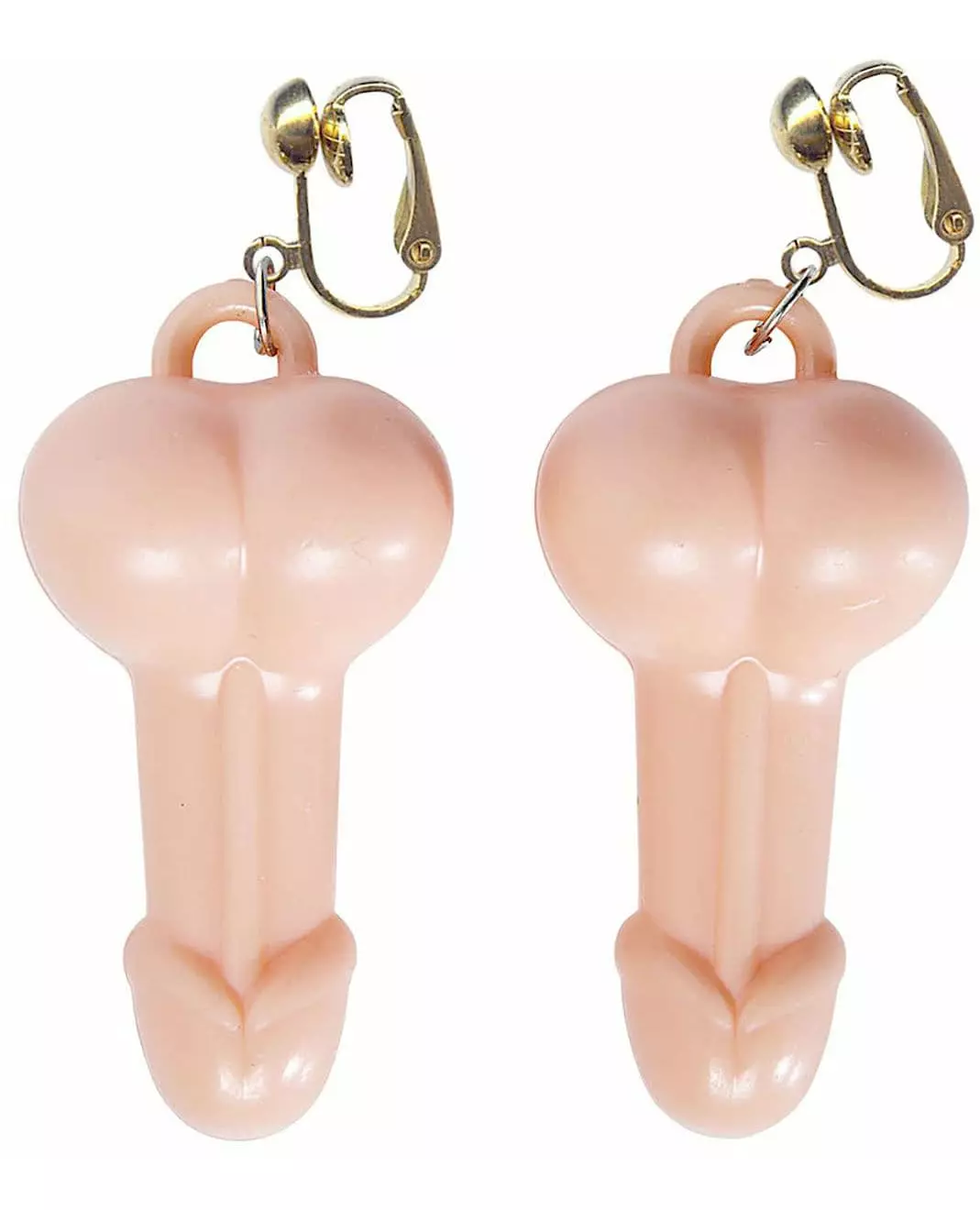 Originalt! Dette paret med frekke plastøredobber er formet som en penis. Disse øredobbene måler omtrent 5 cm i lengden. Dette tilbehøret er ideelt for et utdrikningslag. ©copy; Copyright Widmann SRL. Inkludert tilbehør: Par øredobber