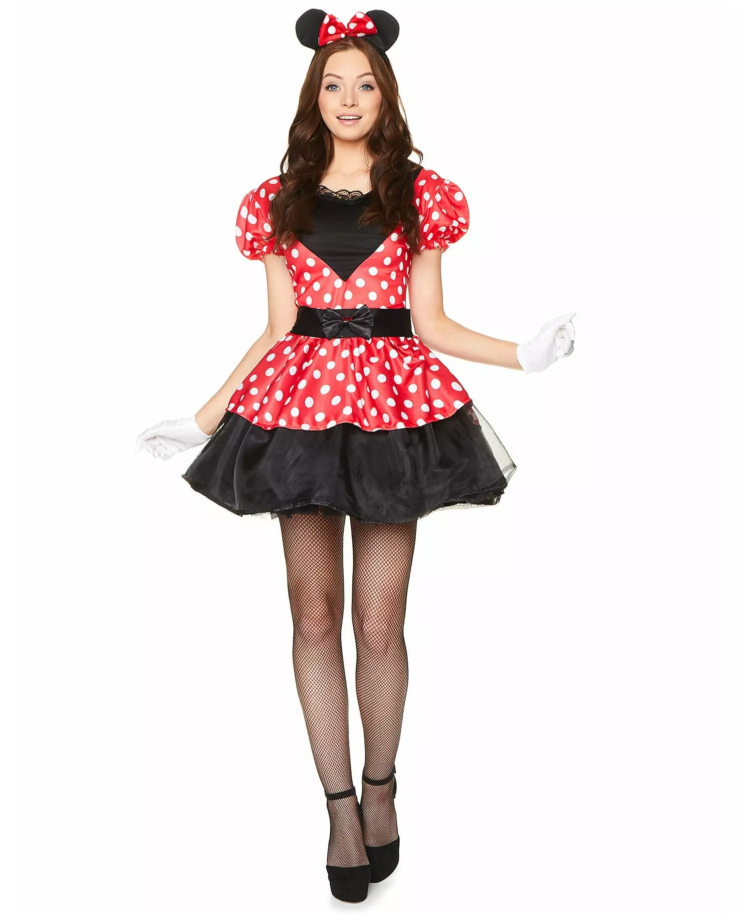 Legemliggjør en pen liten mus Dette musekostymet for kvinner består av en kjole, et belte, et par hansker og et pannebånd. Kjolen er rød med hvite prikker, med en svart V-hals og korte puffermer. Et bånd av svart stoff er plassert nederst på denne korte kjolen. Det svarte satengbeltet er dekorert med en fin sløyfe, perfekt for å gi kjolen et tettsittende utseende. Fullfør hele det svarte pannebåndet med runde svarte museører og en rød sløyfe med hvite prikker samt hvite hansker! Dette kostymet vil være perfekt for å forvandle deg til en ekte mus under et karneval, en tegneseriefest eller en bursdag. Inkludert tilbehør: Kjolebelte Et par hansker Pannebånd Materiale: 100 % polyester Vedlikehold: Håndvask