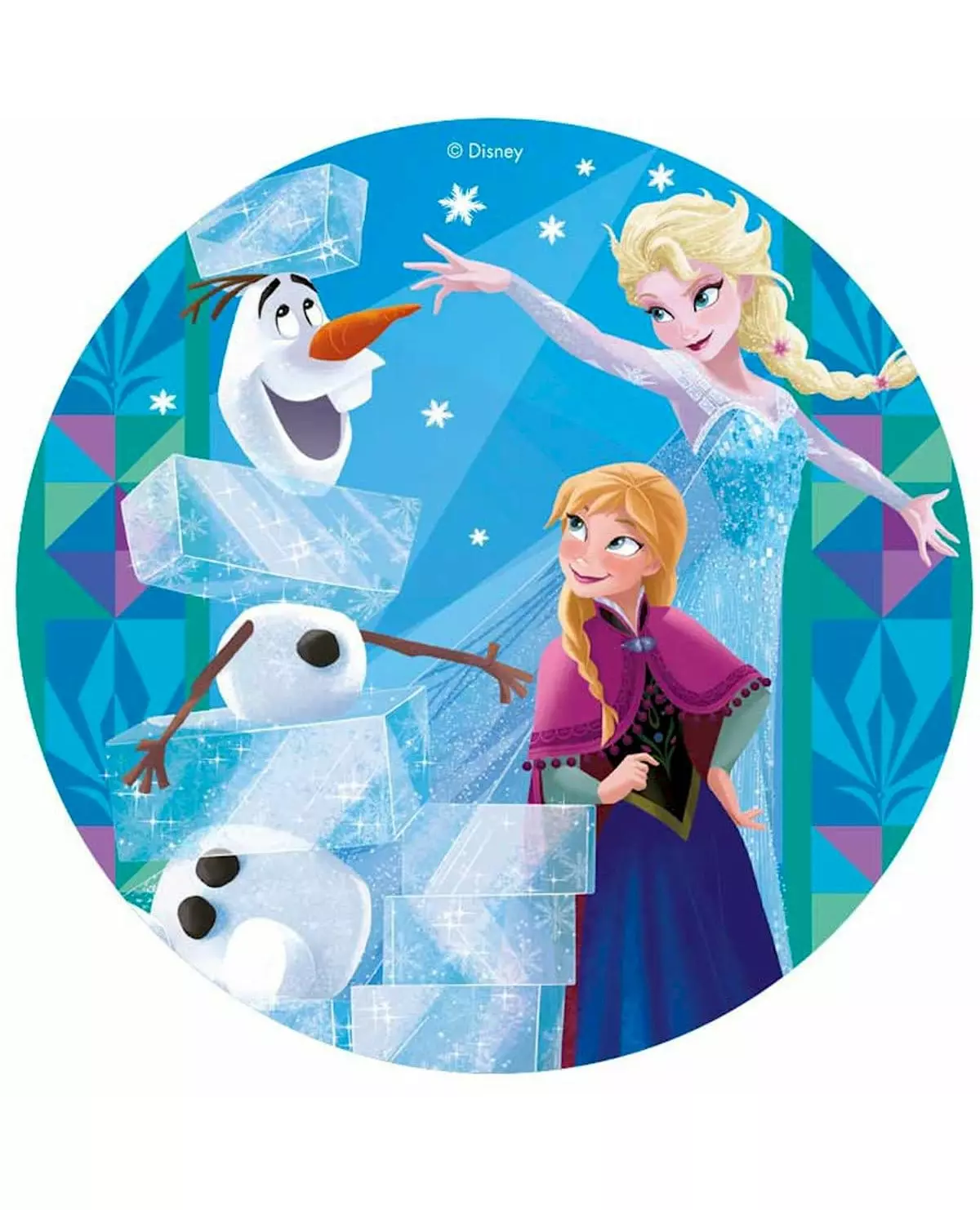 Ønsker du deg en snømann? Denne offisielt lisensierte spiselige Frozen®-disken er laget av kjekspapir. Den måler omtrent 20 cm i diameter. Den er blå i fargen og dekorert med snøflak, prinsessene fra Arendelle: Anna og Elsa, og deres trofaste venn Olaf, snømannen. Som alltid ser de to søstrene smilende ut i sine vakreste kjoler. Lag en utsøkt bursdagskake til datteren din som er fan av tegnefilmen med denne spiselige disken! Ingredienser: Potetstivelse, vann, olivenolje, fargestoffer: E102, E110, E122, E133, E151. Glutenfri, laktosefri, uten tilsatt sukker, uten melkeprotein. Passer for vegetarianere. Inkludert tilbehør: 1 matdisk. Materiale: Kjeks.
