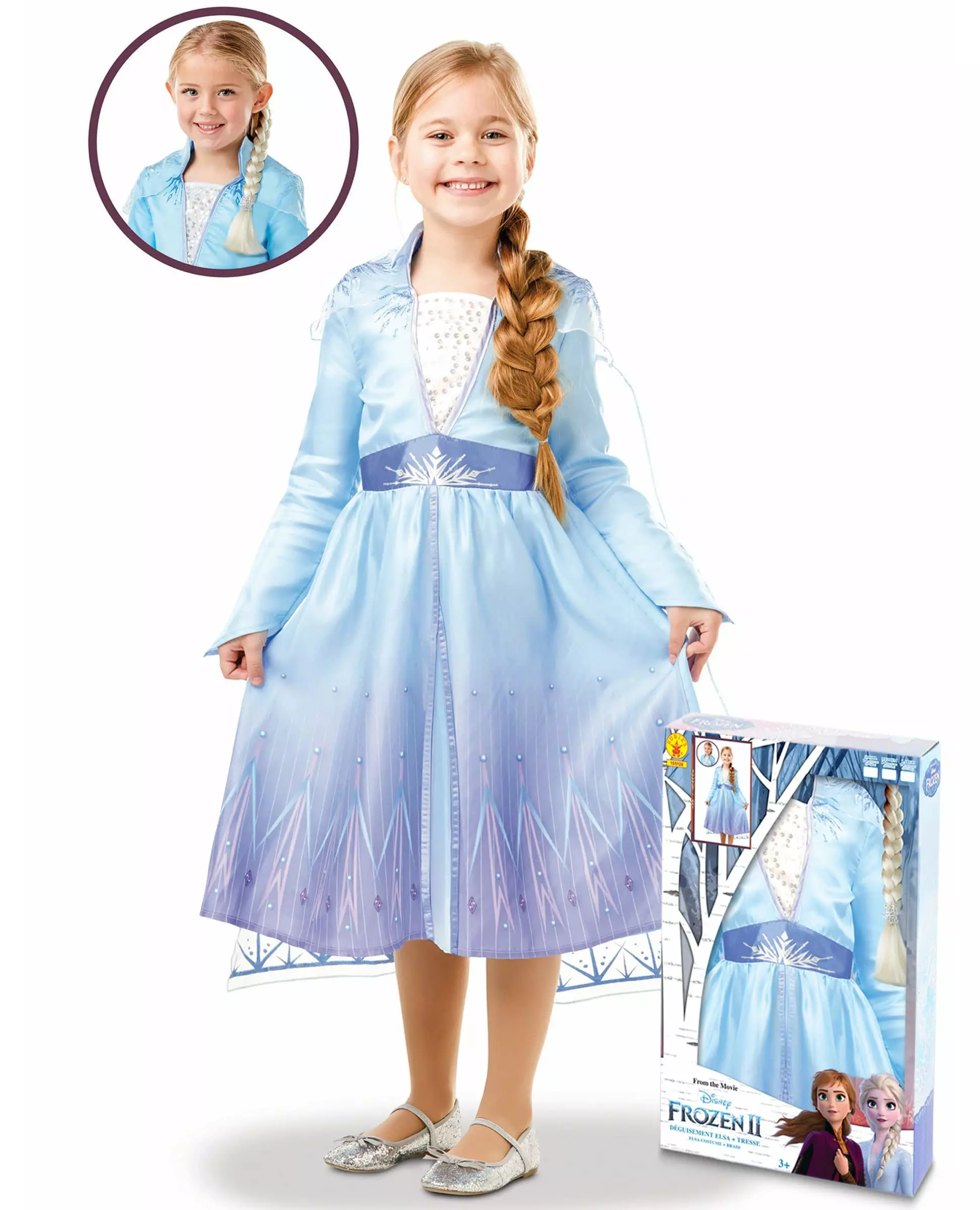 Frost 2 Elsa-kostyme og flettesett for jenter
