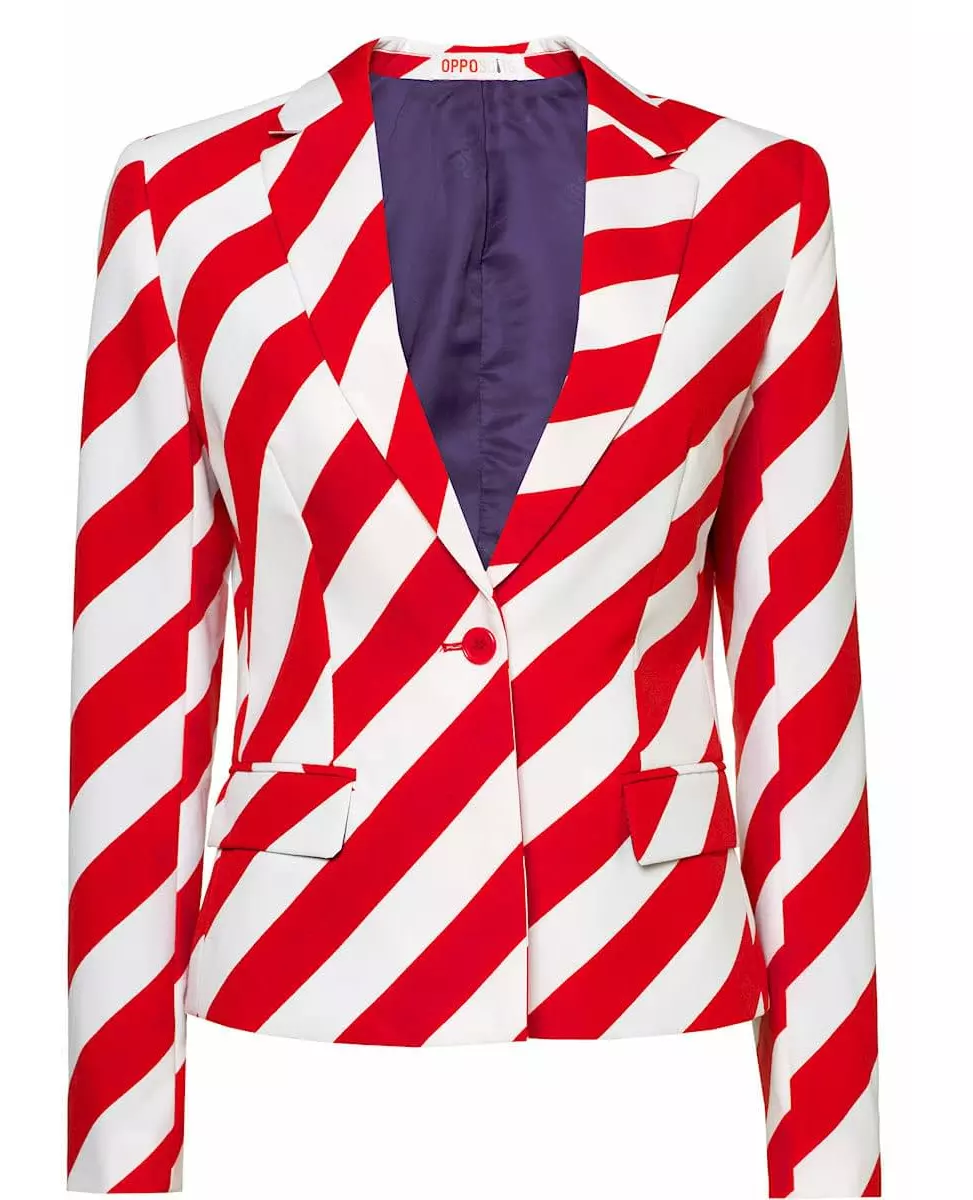 Velg en Opposuits Miss America til kostymefesten din. Dette offisielt lisensierte Opposuits™-kostymet for kvinner består av en jakke og et skjørt. Jakken er laget av et vakkert hvitt og rødt stripete stoff. Den har to falske lommer på sidene og lukkes med en knapp. Blyantskjørtet er marineblått med hvite stjerner. Det har to brede elastiske bånd på sidene og lukkes med en usynlig glidelås. Denne Opposuits Miss USA-kostymet vil være perfekt for å delta i en kostymefest med temaet USA. Inkludert tilbehør: Jakke Skjørt Materiale: 100 % polyester Pleie: Håndvask Målinformasjon: For størrelse L, jakke 40 cm bred ved skuldrene og skjørt 38 cm bred i midjen (uten å strekke elastikken)