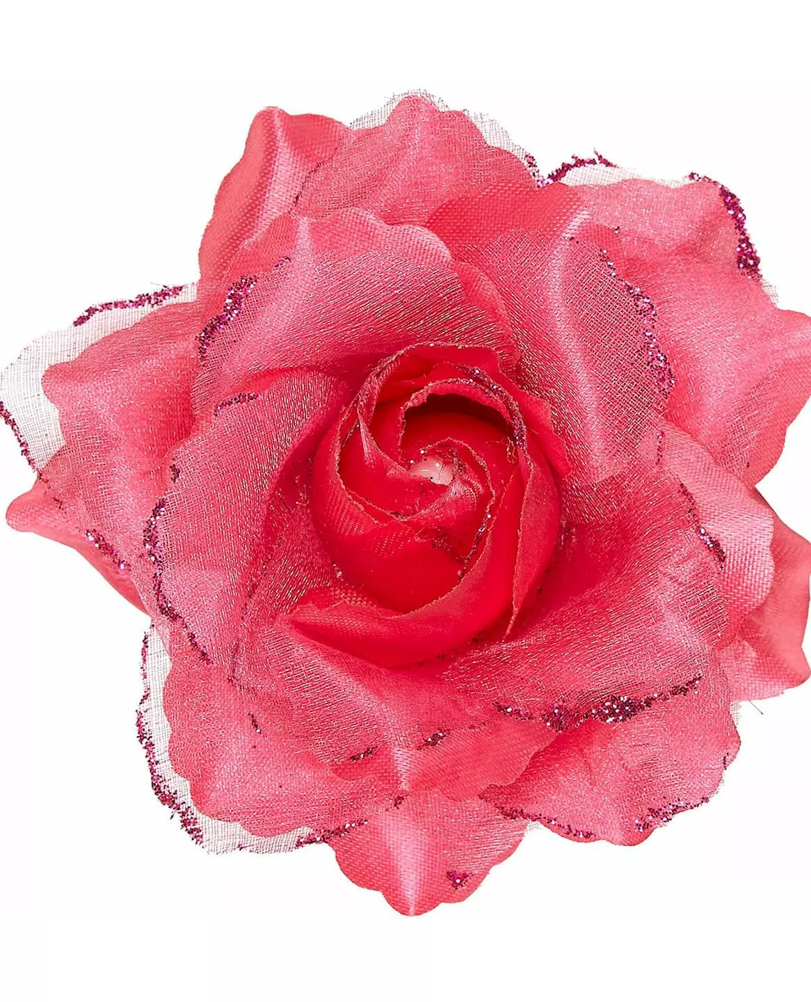 Gi antrekket ditt et eksotisk preg. Denne hårspennen for voksne forestiller en rose. Blomsten i syntetisk stoff er rosa. Paljetter pryder også kanten av enkelte kronblader. Denne hårspennen holdes i håret med en flat metallklips. Blomsten måler omtrent 10 x 10 cm. Dette tilbehøret vil være perfekt for å fullføre et vahine- eller calaveras-kostyme til de dødes dag. «Copyright Widmann SRL» «Copyright Widmann SRL. Inkludert tilbehør: Hårspenne