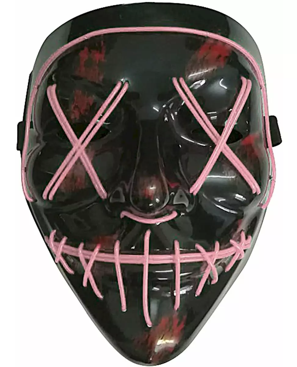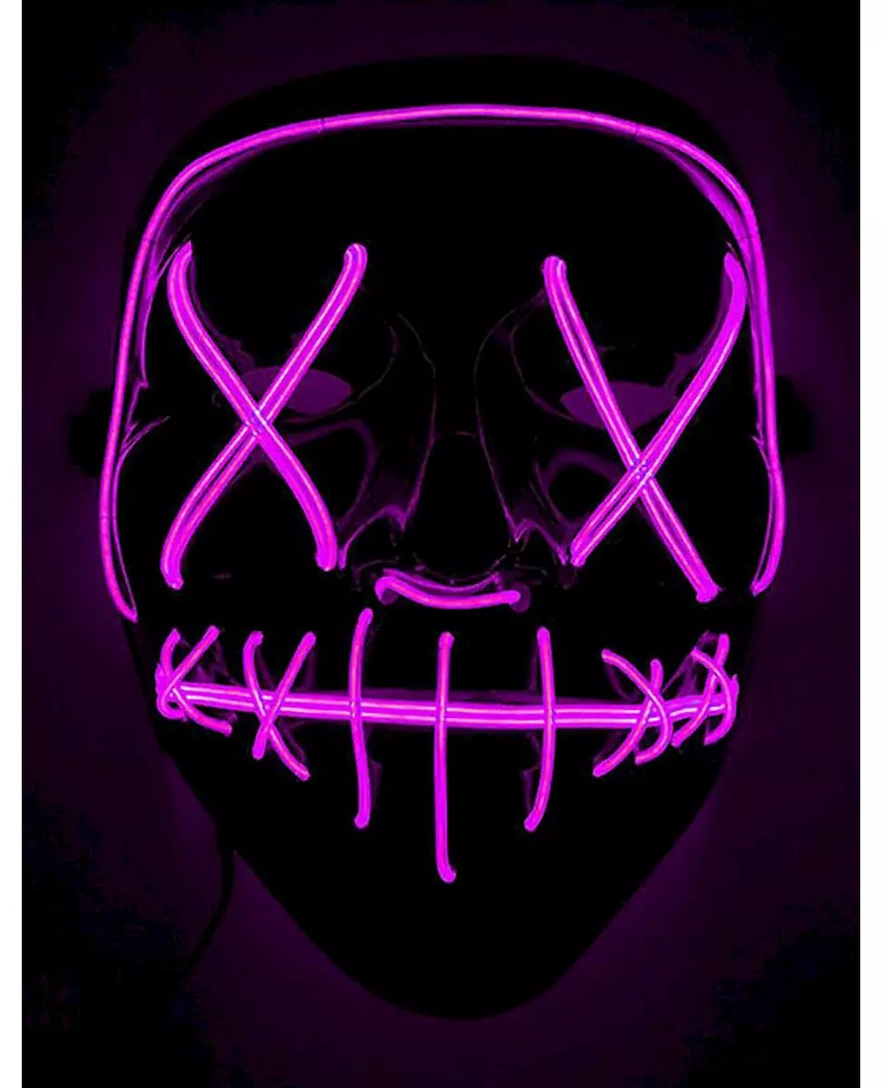 Denne Halloween-dagen vil ingen våge å komme bort til deg med denne fuchsiafargede LED-lysmasken for voksne ... Denne fuchsiafargede LED-lysmasken er laget av plast. Det er en voksenmaske som måler 20x18 cm. Hvis du slår den på i fullstendig mørke, vil du se et forstyrrende ansikt laget av fuchsiafargede LED-ledninger knyttet rundt munnen og øynene. I dagslys er masken helt svart, men med blodflekker ... et vitnesbyrd om grusomhetene fra forrige Halloween! For å slå den på er ingenting enklere: to AA-batterier (ikke inkludert) driver en boks. Etuiet og masken er koblet sammen med 1 meter kabel, som gjør at den kan oppbevares i en lomme og beveges fritt! Du har 4 forskjellige lysmoduser: stabil (fast lys), langsom blinking, rask blinking og av. Lyset som sendes ut er kaldt, det vil si at LED-ledningene ikke varmes opp når masken er på! Ingen helsefare! Til Halloween kan du danne et blodig par ved å bruke denne fuchsiafargede LED-masken og en annen blå maske, for eksempel! Fra kl. 21.00 er alt lov .... Inkludert tilbehør: Fuchsia LED-maske Materiale: PVC