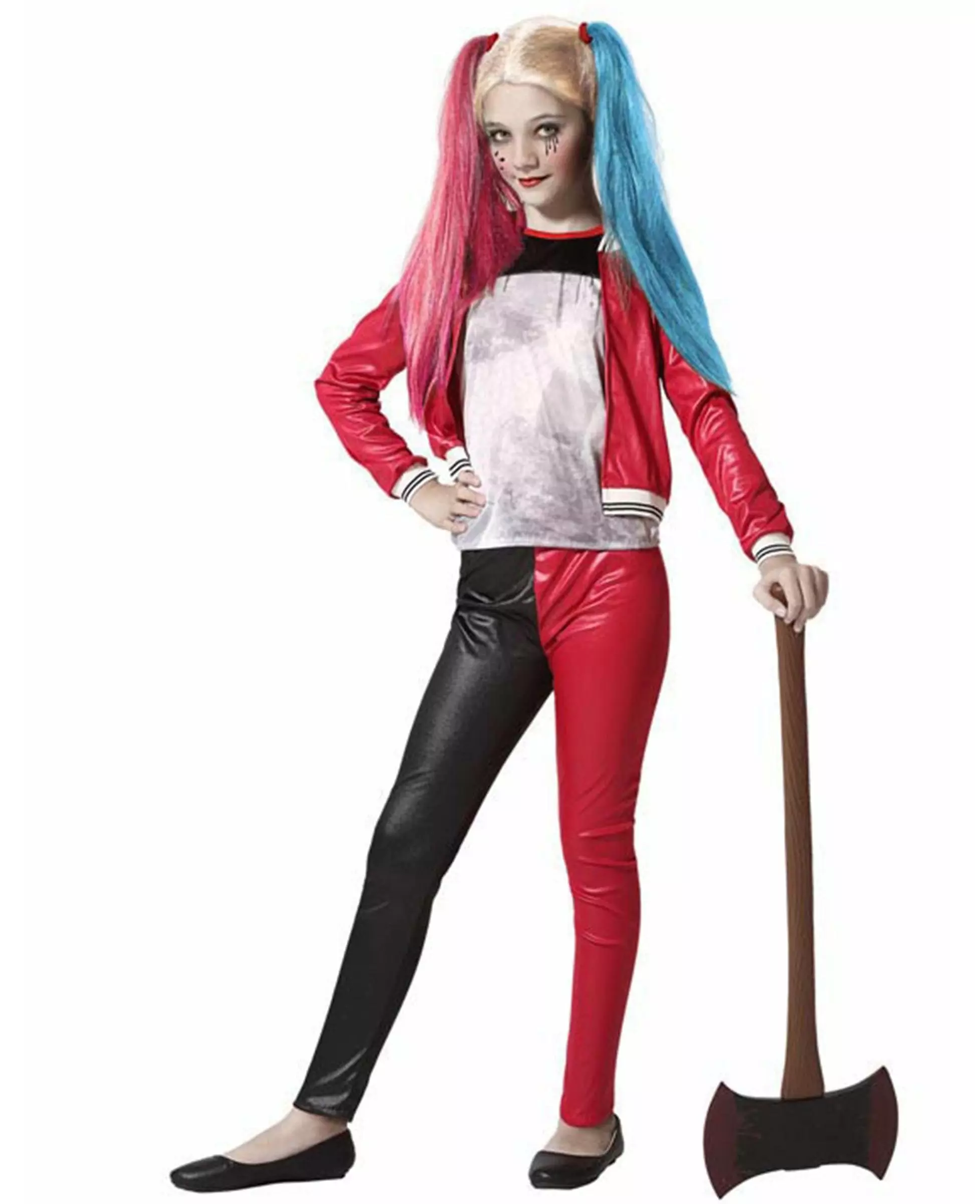 Sammen med Jokeren vil du gjøre et plask i dette kostymet. Dette gale harlekinkostymet for jenter består av en topp, en jakke og bukser (parykk, øks og sko er ikke inkludert). Toppen er laget av et grått stoff med en falmet effekt. Kragen er fremhevet med en rød kant. Bomberjakken er rød, med svarte og hvite ermekanter. Buksene har ett svart og ett rødt ben. Dette kostymet vil være perfekt for å leke den gale harlekinen på Halloween. Inkludert tilbehør: Topp, jakke, bukser Materiale: Polyester Vedlikehold: Håndvask