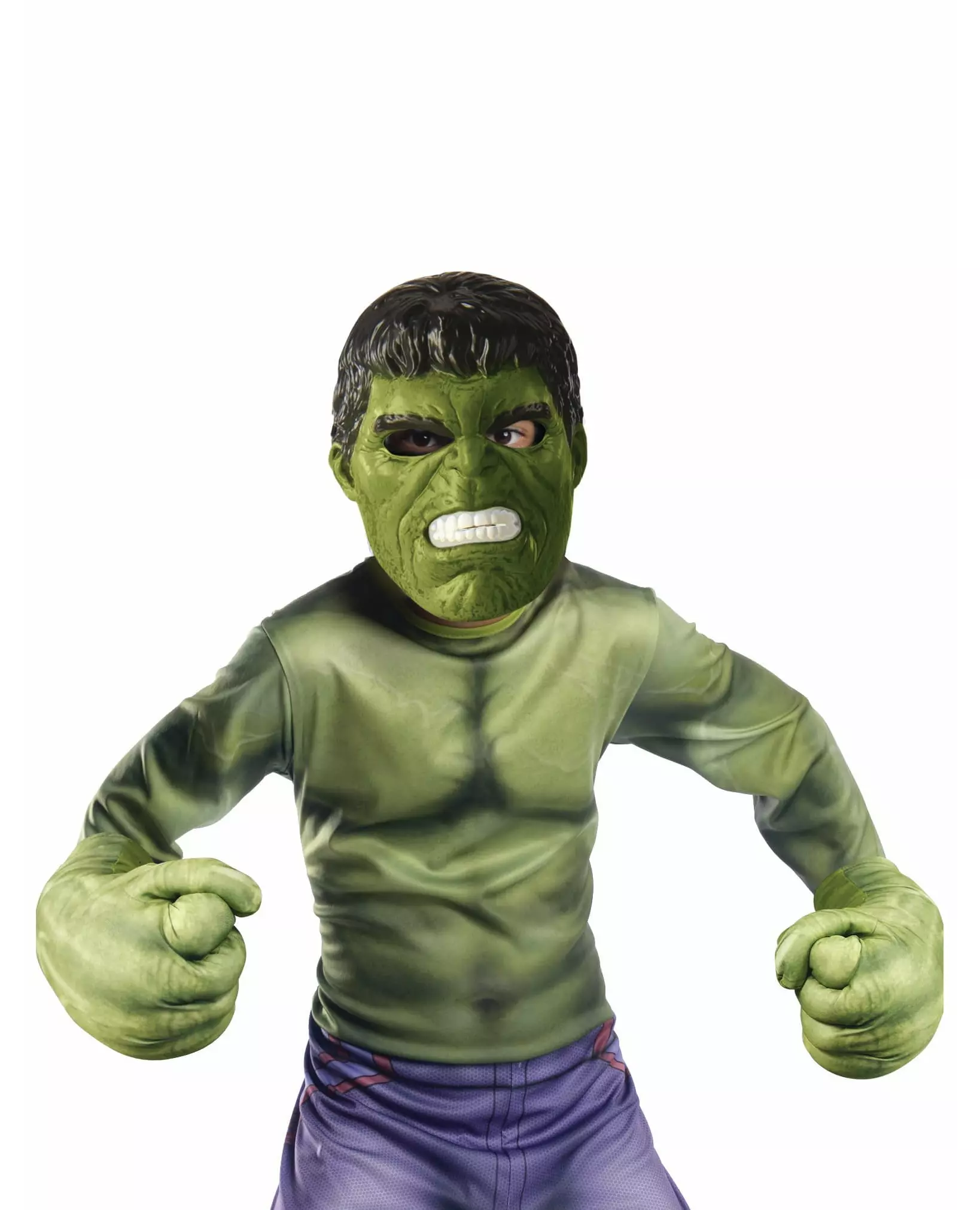 Bli med på Avengers-laget! Dette Hulk™-settet er offisielt lisensiert av Marvel™. Det består av en halvmaske og et par gigantiske hansker (t-skjorte og bukser er ikke inkludert). Halvmasken er laget av grønn PVC. Den representerer ansiktet til den sinte superhelten Hulk™. Den er utstyrt med elastiske stropper og et borrelåssystem, som sikrer god passform. Hanskene er laget av grønt stoff og er polstret for å gi denne gigantiske effekten. Dette Hulk™-settet vil være perfekt for å spille Doktor Banner og bli med på Avengers-laget til en bursdag. Inkludert tilbehør: Gigantiske hansker Halvmaske Materiale: PVC, Polyester Pleie: Håndvask