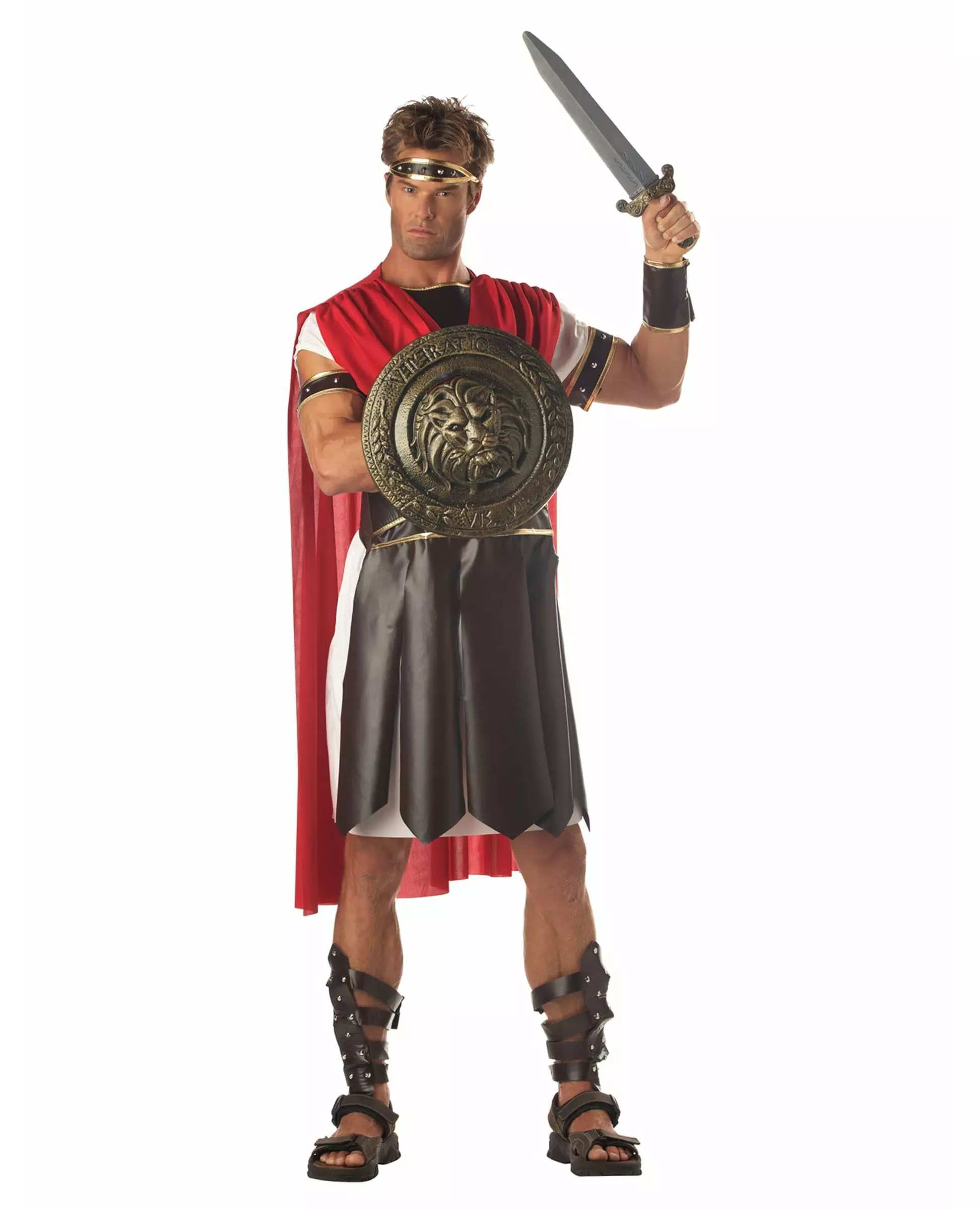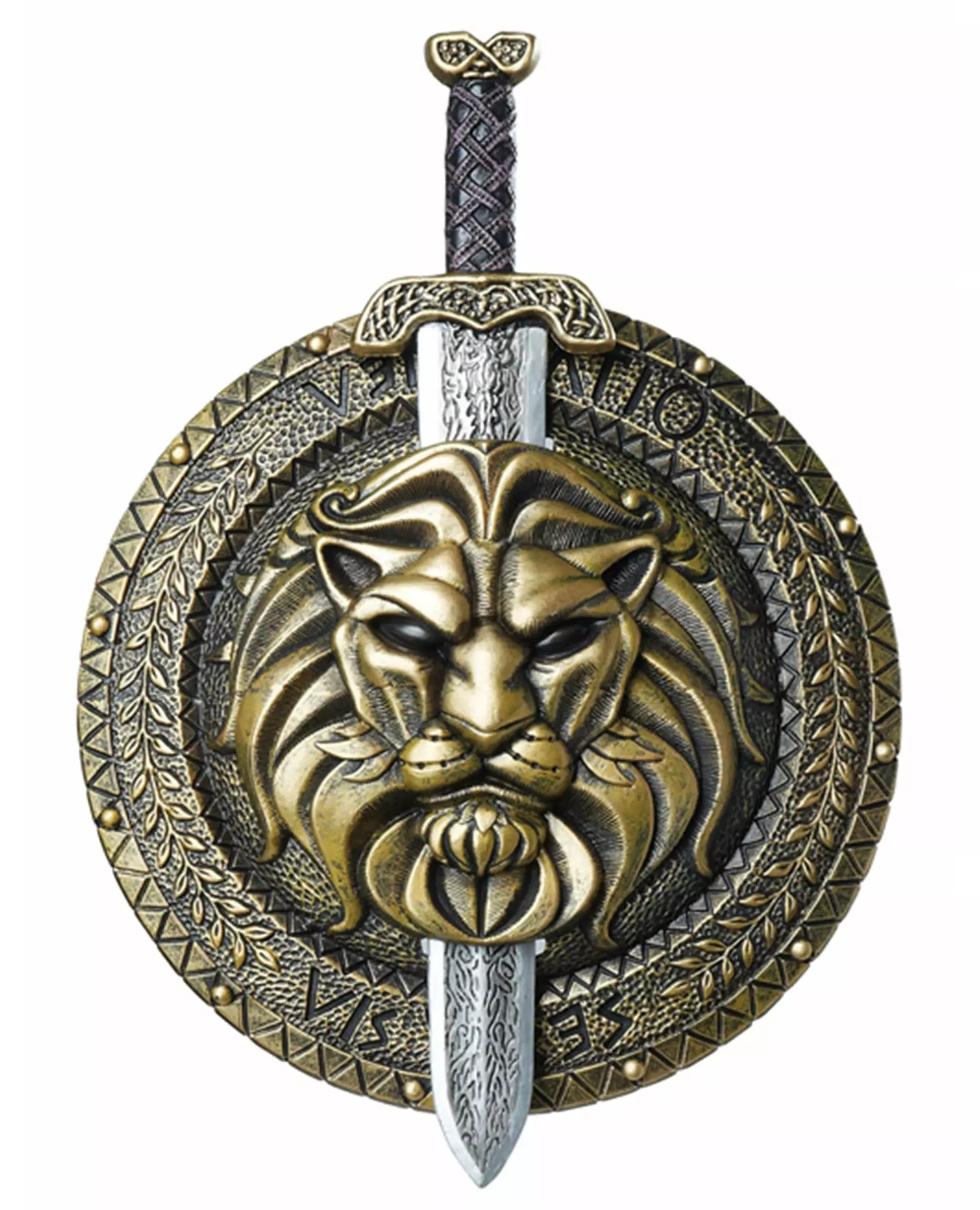 Forvandle deg til en ekte gladiator! Dette tilbehørssettet består av et gladiatorskjold og -sverd. Plastskjoldet er gullfarget. Det måler omtrent 46 cm i diameter og er dekorert med et løvehode og romerske motiver. Det matchende sverdet måler omtrent 61 cm. Bladet er sølvfarget og håndtaket er brunt. Fullfør gladiatorkostymet ditt til dine neste kostymefester. Inkludert tilbehør: Skjold, sverd, materiale: plast