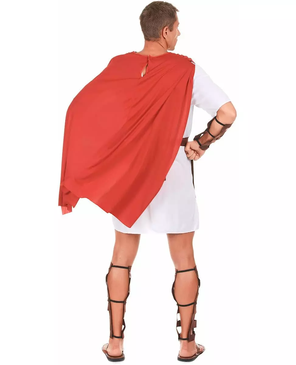 Klar til å entre arenaen! Dette gladiatorkostymet for menn består av en tunika med brystplate, kappe, mansjetter og gamasjer. Tunikaen er satenghvit, og brystplaten som er sydd på er laget av brunt og gullfarget skum med en rød kappe. Arm- og benbeskytterne er laget av brunt skum. De er enkle å ta på med strikk. Dette kostymet vil være perfekt for å forvandle deg til en gladiator for en kveld i antikken eller under feiringen av årets slutt. Inkludert tilbehør: Tunika med kappe og brystplate 2 armbeskyttere 2 benbeskyttere Materiale: 100 % polyester Vedlikehold: Håndvask Målinformasjon: For størrelse M er tunikaen omtrent 96 cm lang og 52 cm bred