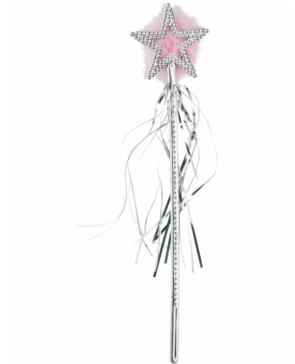 Dekket med strass! Denne sølvfargede glitrende stjernestaven måler 34 cm lang. Den er laget av plast, dekket med sølvfargede strass som gir den dette glitrende utseendet. Stjernen måler 7,5 cm i diameter. Dette tilbehøret er uunnværlig til prinsesse- eller feantrekket ditt under temafestene dine.