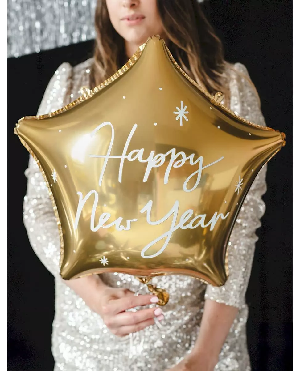 En dekorasjon full av lys! Denne dekorasjonen forestiller en ballong med en diameter på omtrent 50 cm. Laget av aluminium, er denne ballongen representert i form av en vakker og stor gyllen stjerne, inkludert hovedinnskriften "Godt nytt år". Denne ballongen vil være perfekt for å fullføre romdekorasjonen din til nyttår med venner! Tilbehør inkludert: 1 ballong Materiale: Aluminium