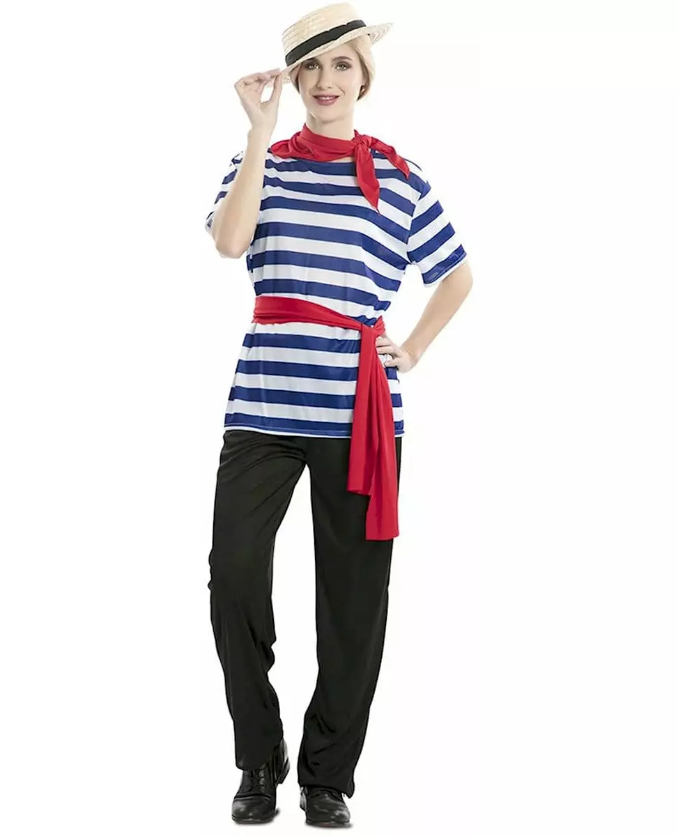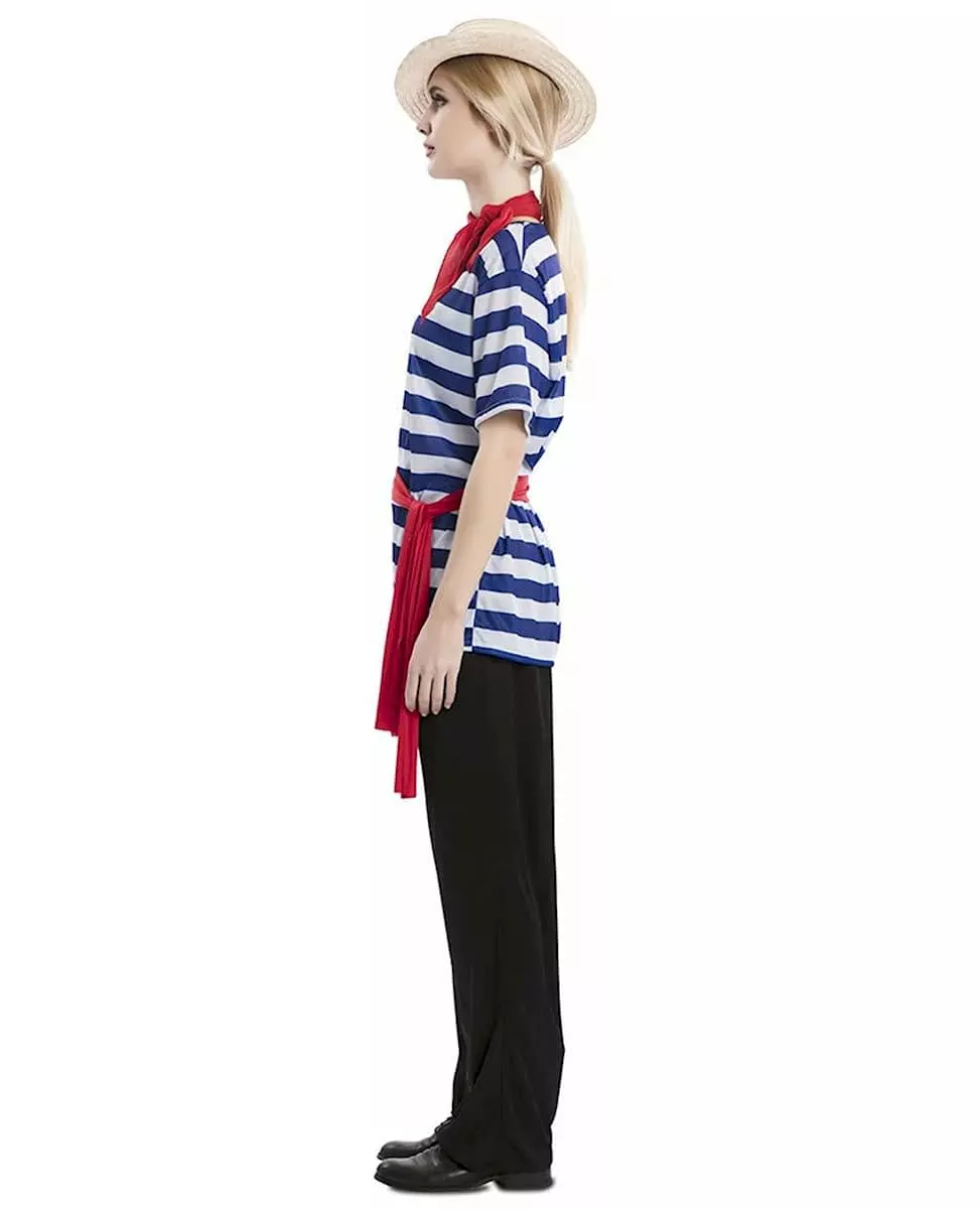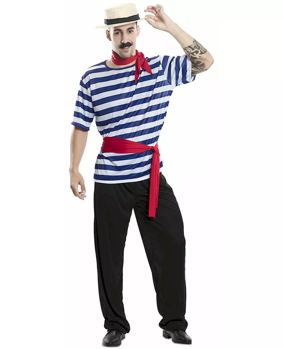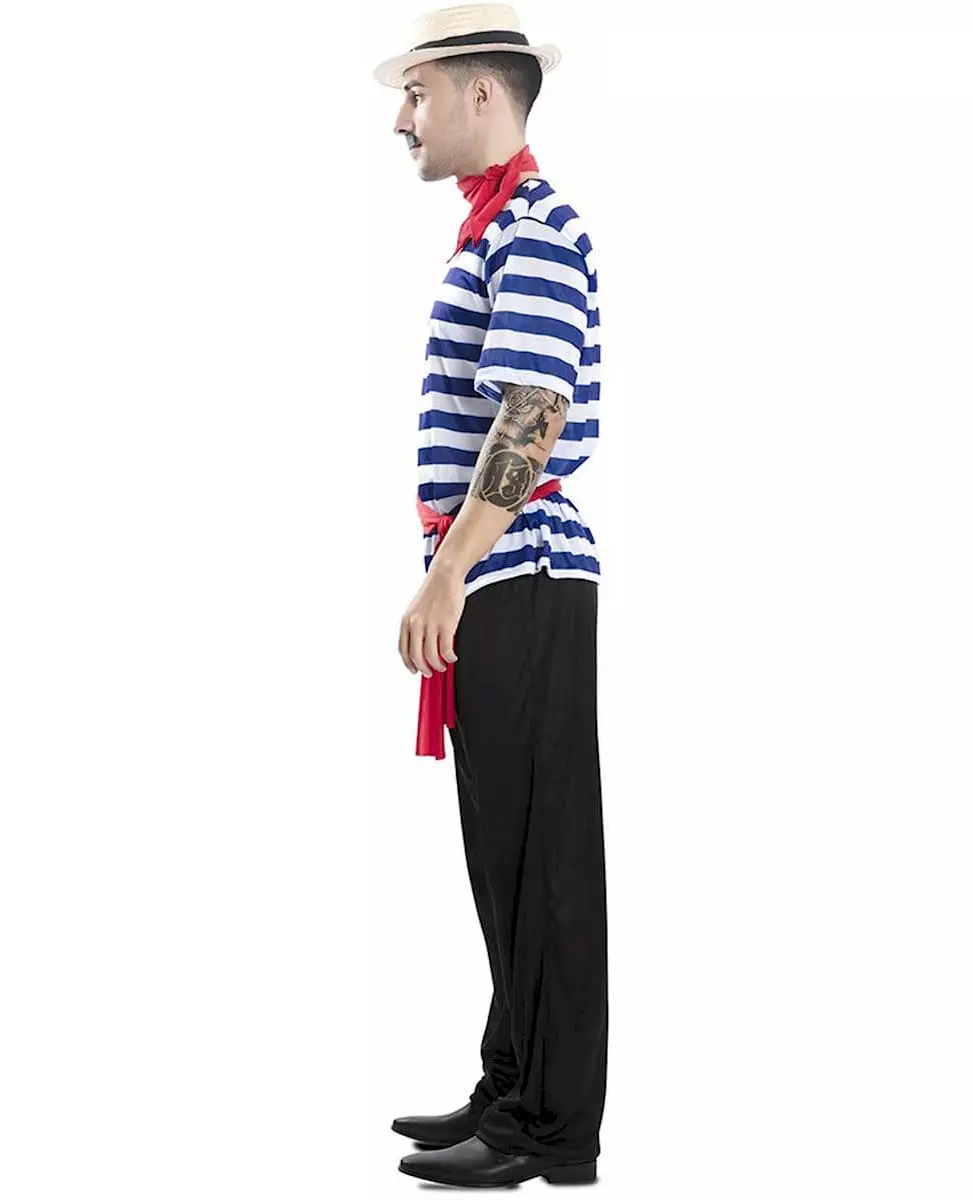 Dra til Venezia i dette gondolierkostymet. Dette gondolierkostymet for voksne består av en topp, bukser, et skjerf og et belte (hatt, bart og sko er ikke inkludert). T-skjorten har brede blå og hvite striper. Den kompletteres med ensfargede svarte bukser. Skjerfet og beltet har røde knytebånd som knytes rundt halsen og midjen. Dette kostymet vil være perfekt for å spille venetiansk gondolier på en kostymefest eller til karneval. Inkludert tilbehør: T-skjorte, bukser, skjerf, belte. Materiale: 100 % polyester. Vedlikehold: Håndvask.