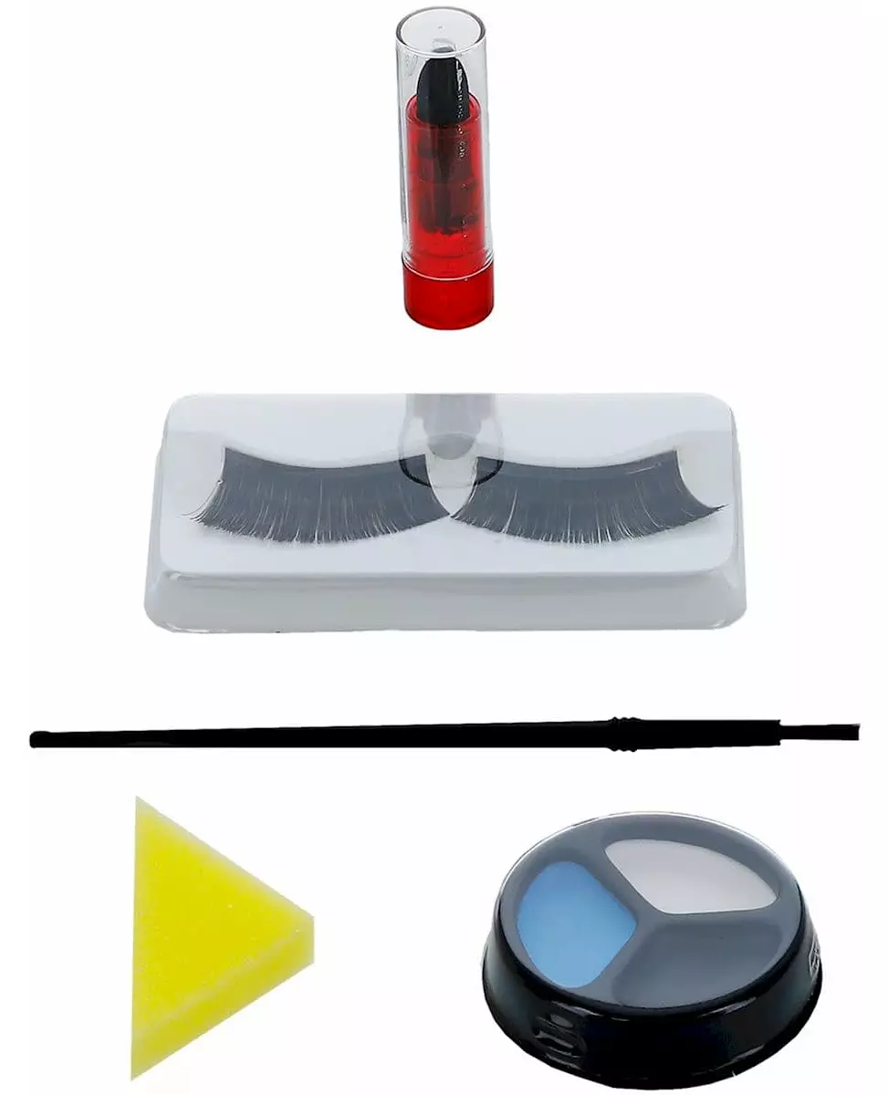 Forvandle deg til en skrekkdukke! Dette gotiske sminkesettet for voksne inkluderer en trefargers palett (hvit, blå og svart), svart leppestift, en svamp, en applikatorbørste og falske øyevipper. Påfør en hvit base over hele ansiktet med svampen og hul ut kinnene dine med svart. Bruk applikatorbørsten til å lage mørke øyne. Påfør de falske øyevippene, farg leppene dine svarte, og du er ferdig! For en skrekkdukke-effekt på Halloween-festene dine! Inkludert tilbehør: Palett med tre farger En svamp En svart leppestift Et par falske øyevipper En børste