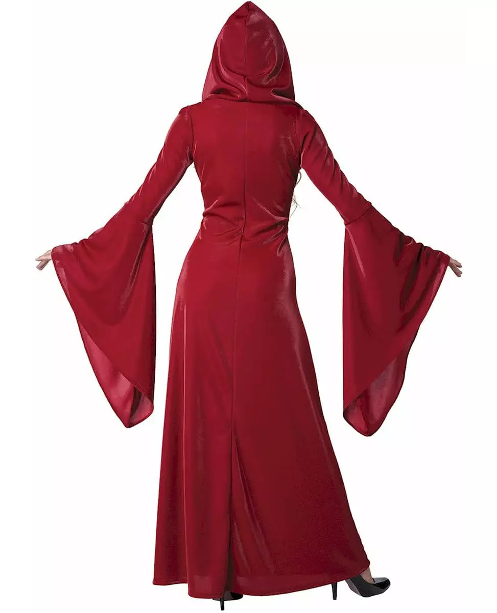 En elegant kjole til ditt djevelske arrangement! Dette røde gotiske kostymet er for kvinner. Det inneholder en kjole med hette. Den røde kjolen kjennetegnes av lange, utsvingte ermer. Den er dekorert med snøring foran og lar deg justere kjolen til kroppsfasongen din. Det er en hette på hele kjolen. Dette gotiske kostymet vil være ideelt for Halloween-kvelden din med venner! Inkludert tilbehør: 1 kjole med hette Materiale: 100 % polyester Pleie: Håndvask