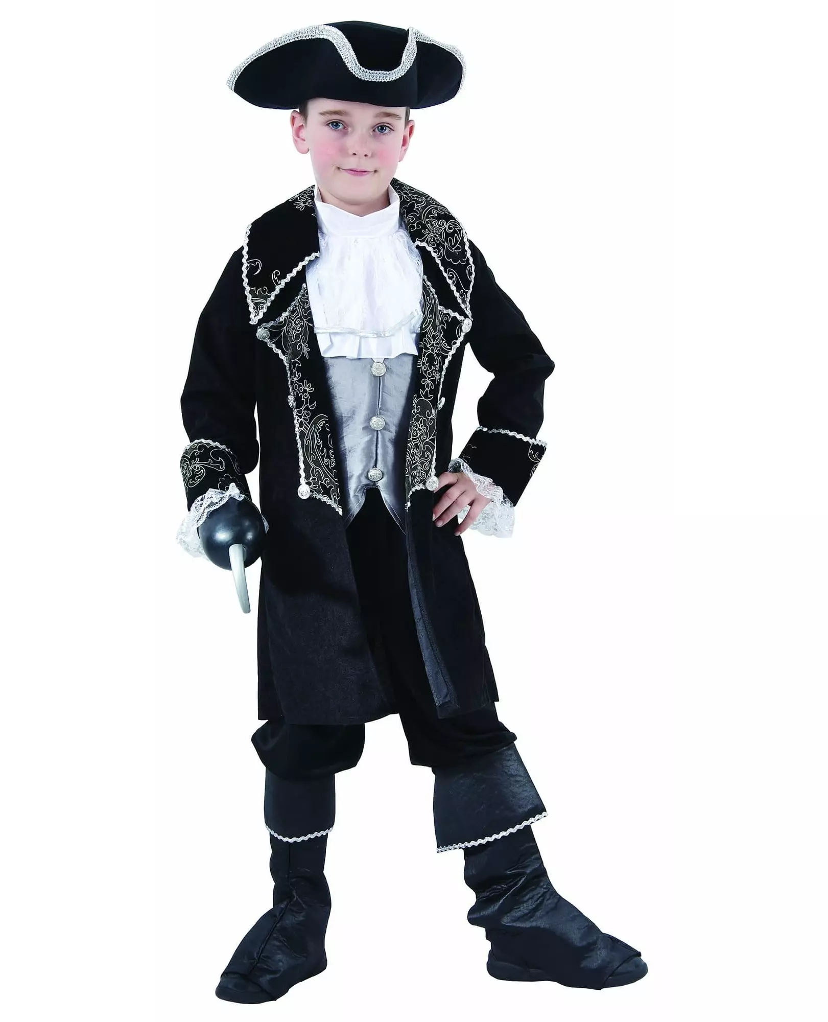 Alle om bord, sjømann! Dette piratkostymet for gutter består av en jakke, et brystplate, en hatt og støveltrekk (sabel og bukser er ikke inkludert). Den lange jakken er svart. Kragen og mansjettene er dekorert med grå arabesker og sølvflette. Hvit blonder pryder også mansjettene. Et brystplate vil gi illusjonen av at du har på deg en vest under denne jakken. Det vil bare skjule forsiden av brystet ditt. Dette representerer forsiden av en grå satengvest med en hvit blondejabot. Den lukkes bak i nakken og livet med borrelås. En trekant vil gjøre deg til en ekte pirat. Den er kantet av en sølvflette. De svarte støveltrekkene har en liten sølvflette. Disse vil skjule toppen av skoene dine. De holdes rundt leggene og under føttene med strikk. Dette kostymet vil være perfekt for å spille en fantastisk piratkaptein til karneval. Inkludert tilbehør: Jakke Bryplate Jabot Hatt 2 støveltrekk Materiale: 100 % polyester Vedlikehold: Håndvask Referanse: 4R8L Sikkerhet: Advarsel! Ikke egnet for barn under 3 år. Inneholder små deler, kvelningsfare. Retur mulig: Ja Se returvilkår Tilgjengelighet: S 4-6 år (110-120 cm) 4R8LE617