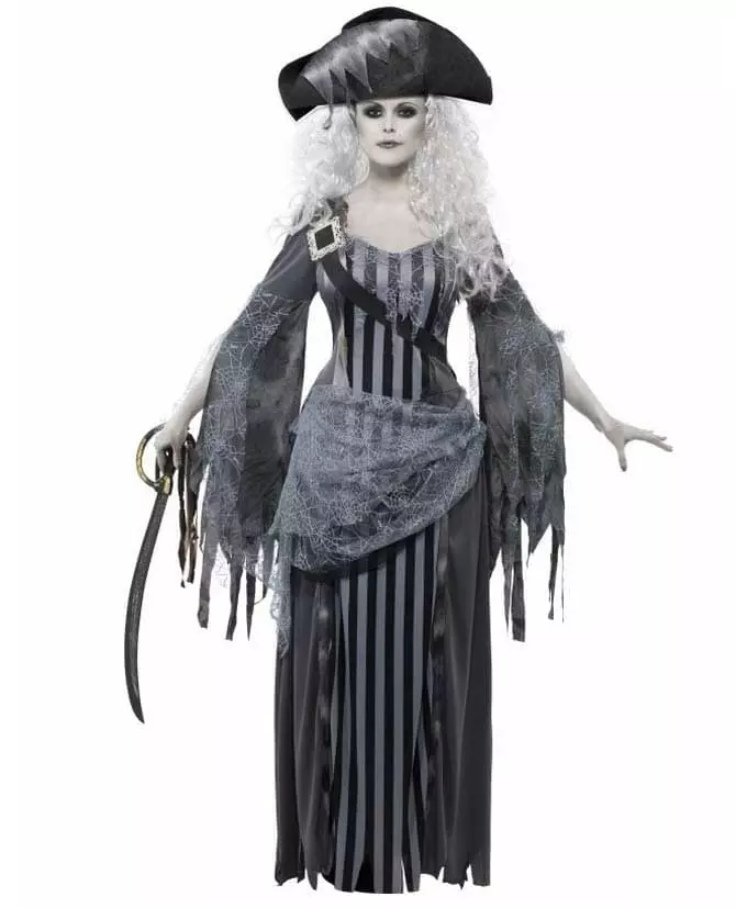 Grått piratspøkelseskostyme til Halloween for kvinner