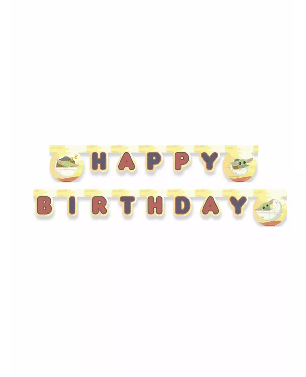 En fin girlander å dekorere hjemmet ditt med Baby Yoda! Denne Happy Birthday Baby Yoda The Mandalorian™-pappgirlanderen måler 2 m lang. Den representerer figuren Baby Yoda rundt skriften «Happy Birthday». Fargene er i ganske varme toner: gul, oransje og brun. Dekorer bursdagsrommet ditt med denne fine Star Wars-tema-girlanderen! Inkludert tilbehør: 1 girlander Materiale: Papp