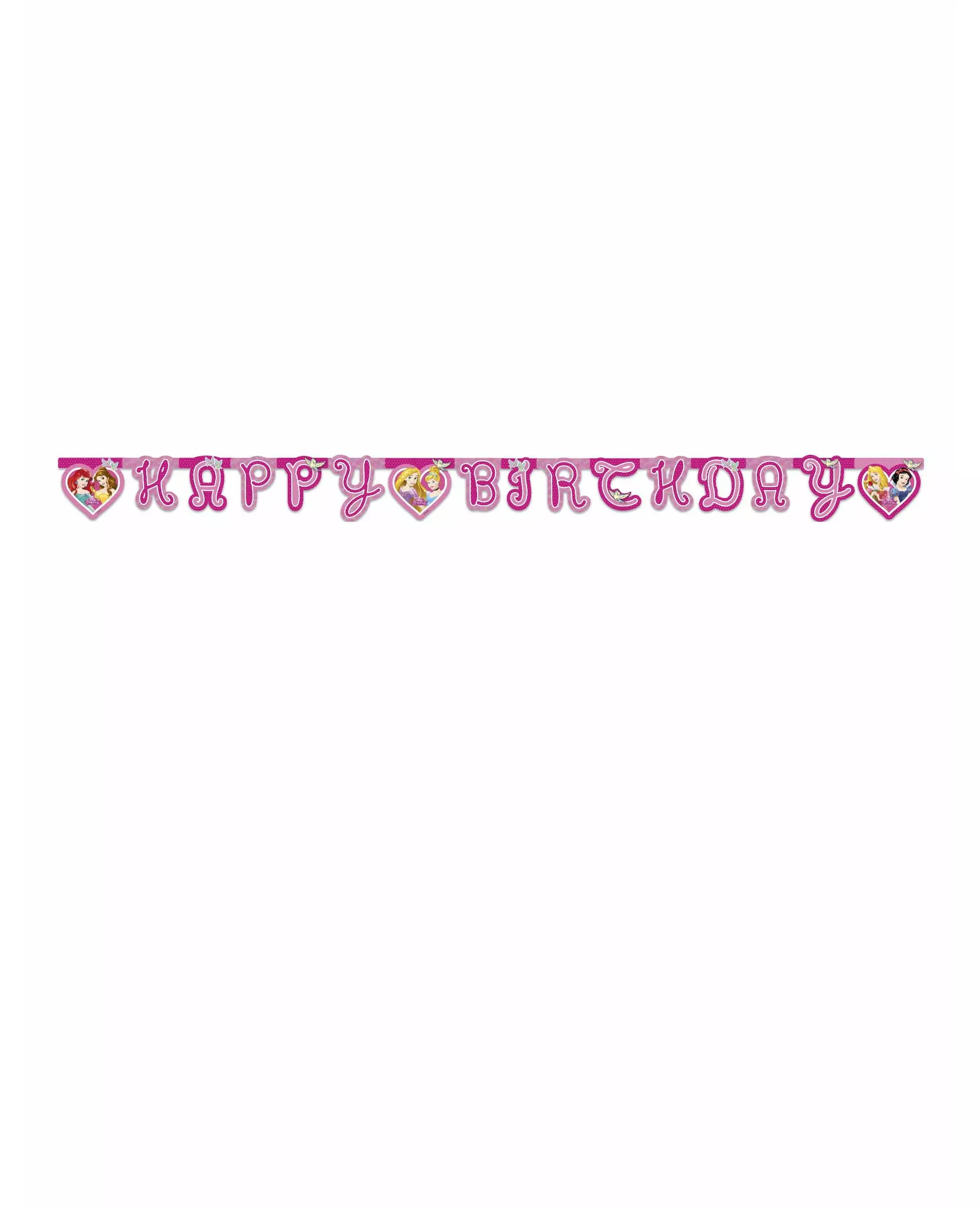 Inviter Disney-prinsessene til bursdagen din! Denne bursdagsgirlanderen er offisielt lisensiert av Disney®. Den er rosa i fargen, måler omtrent 175 x 13 cm og representerer Disney-prinsessene samt inskripsjonen «Happy Birthday» med små fugler. Denne girlanderen vil være perfekt for en Disney-prinsessebursdag! Inkludert tilbehør: 1 girlander Materiale: Papp